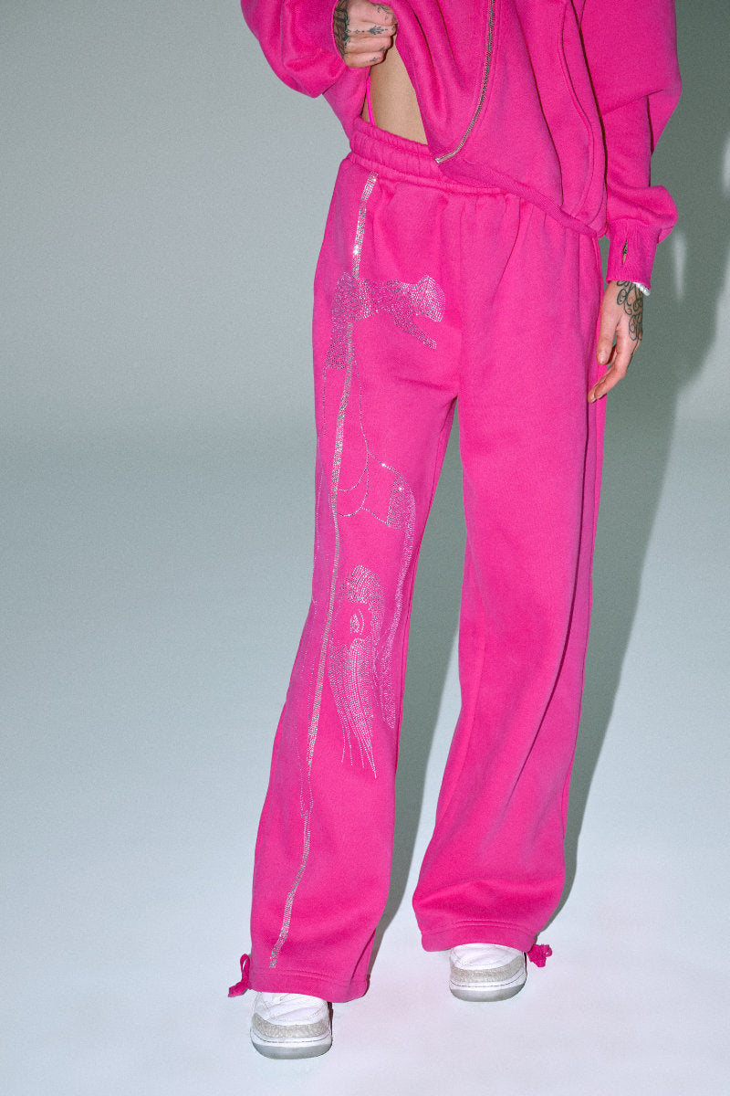 CXIX Anime Pole Dancer Wide Leg Sweatpants – Pink Rhinestone