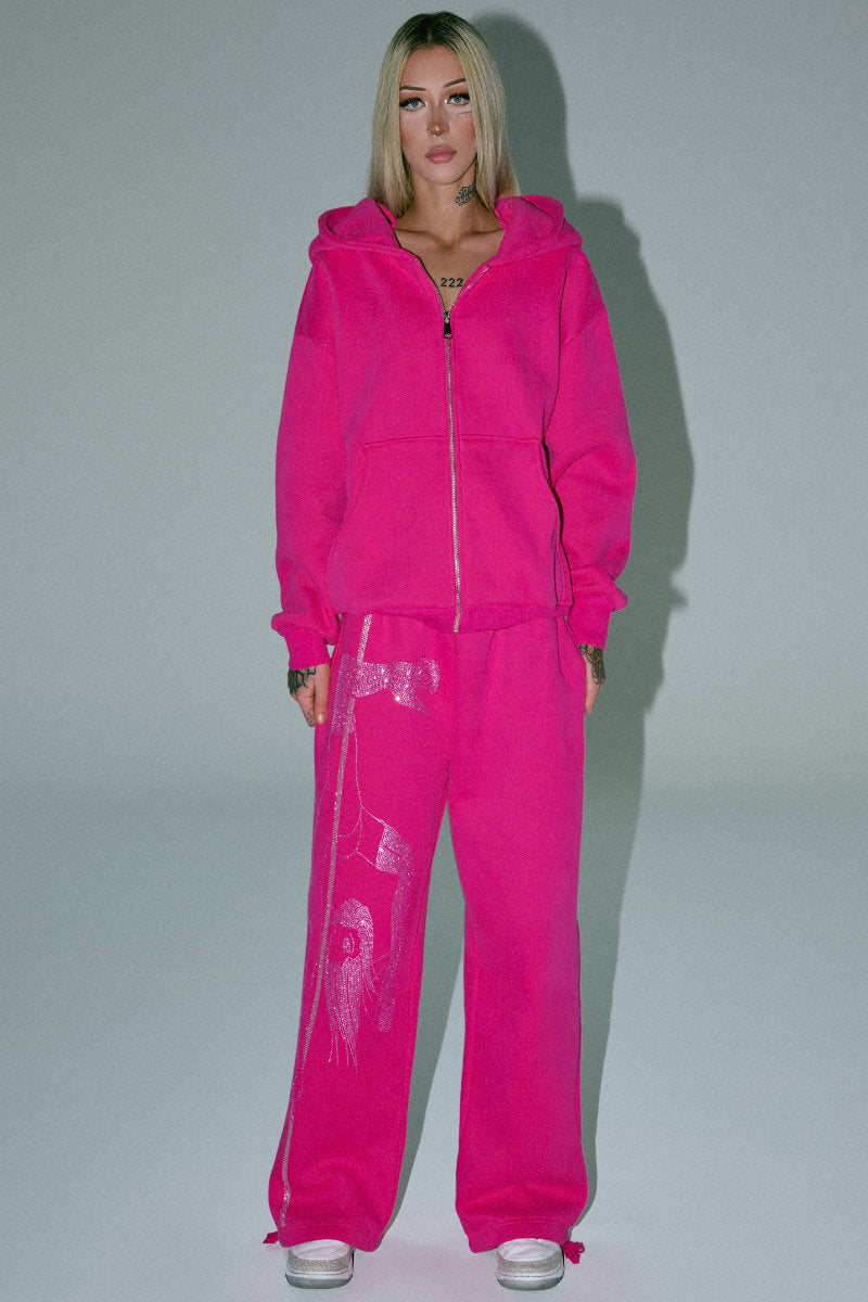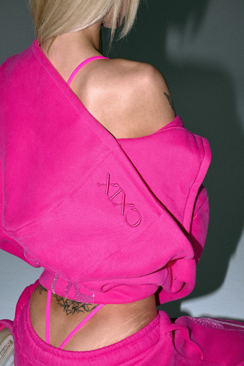 🩷 Statement Oversized Fit 🩷 Front Zip and Drop Shoulders 🩷 Iridescent Rhinestone Pole Dancer 🩷 Cozy Arm Cuffs 🩷 Oversized Sleeves 🩷 Thumb Holes 🩷 Roomy Front Pocket (…Room For Kälteen Bars) 🩷 CXIX 3D Pink Embroidered Logo on Hood 🩷 Softer Than Damien’s Pink Polo!