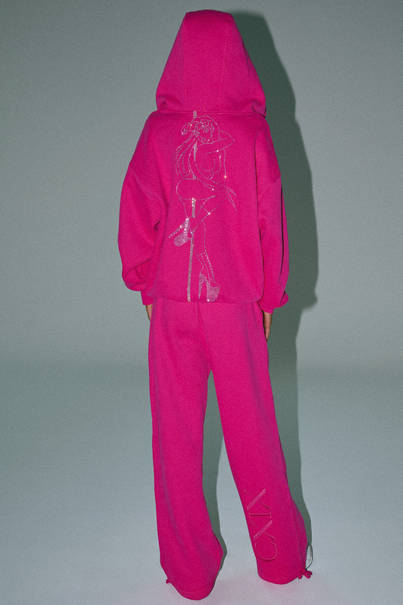 CXIX Anime Pole Dancer Zip Up Hoodie – Pink Rhinestone
