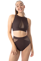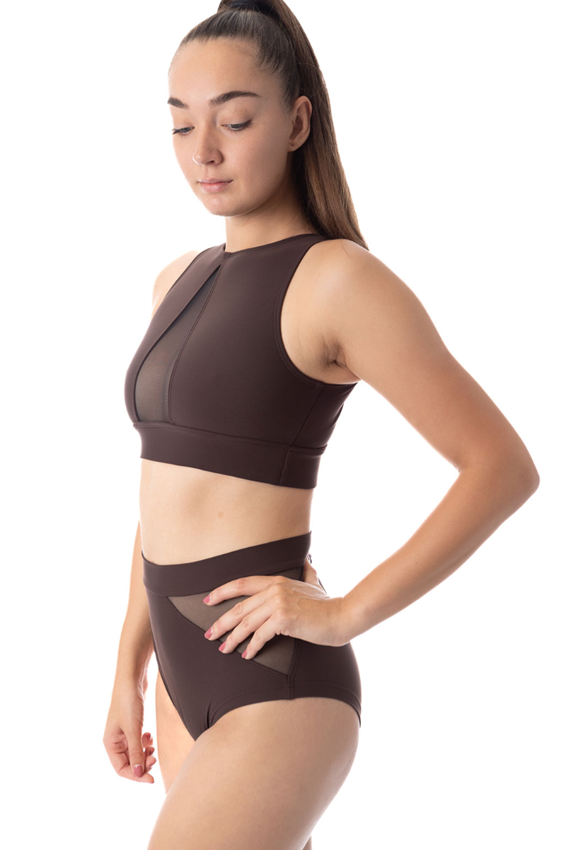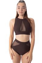 A double shot of daring. These high-waisted shorts, in a rich espresso-brown, are crafted for pure confidence. Sheer mesh panels at the hips meet a signature scrunch bum for a silhouette that turns heads. Made from soft fabric with a cheeky cut, they're your new power move.