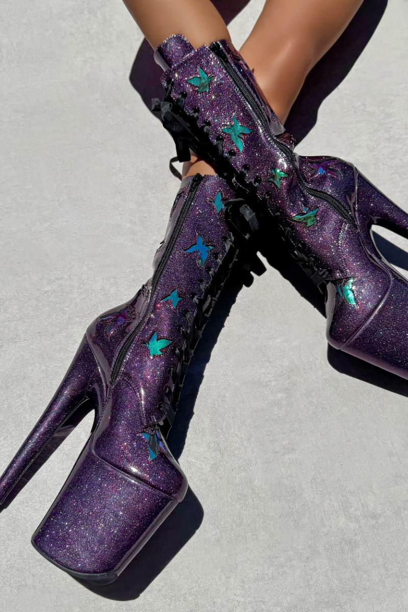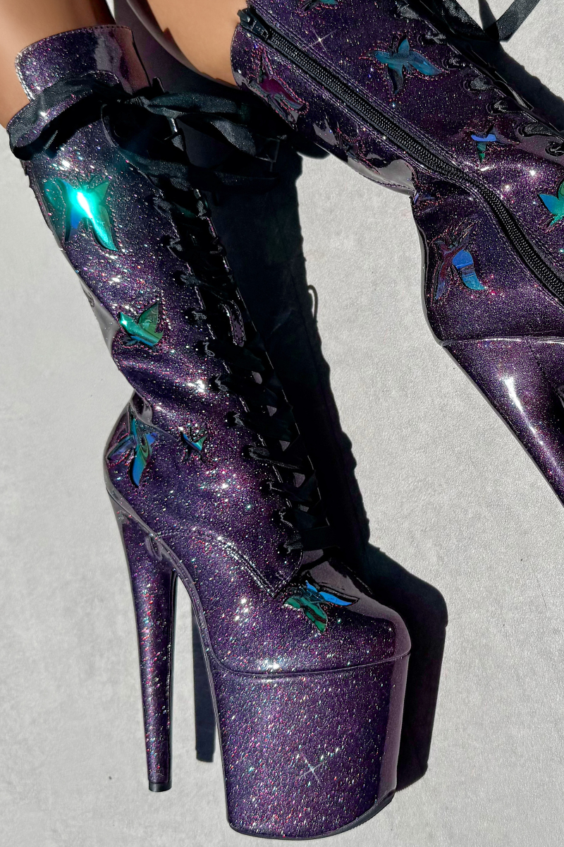 Hella Heels The Glitterati Butterfly 8inch Boots - Mystical Purple