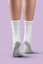 Soften up your sock drawer. This sweet 3-pack of stretchy crew socks adds a touch of cute to your kit. With a supportive ribbed calf and thick sole, they’re perfect for training or just looking adorable. Featuring "Ballerina," "Pole is Art," and "Purple Hearts" designs. A treat for your feet.