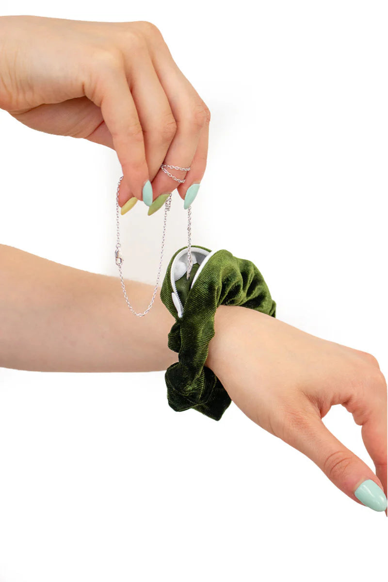 Green Zipper Scrunchie: Gentle grip, hidden zip for your small essentials.