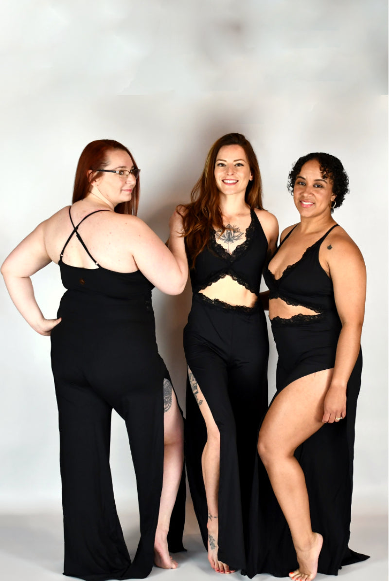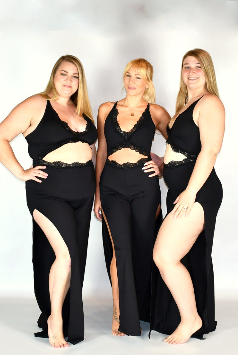 Olra Activewear Statement Open Leg Lace Jumpsuit - Black
