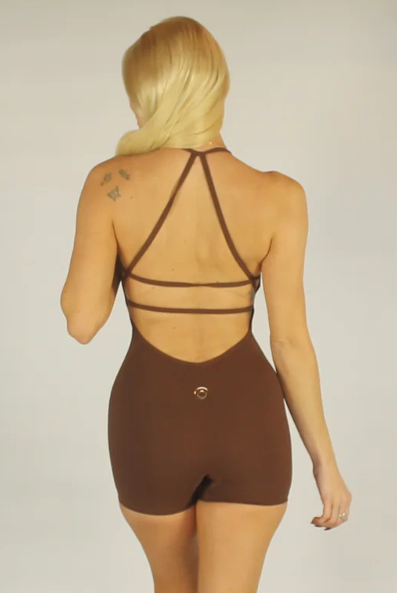 Olra Activewear Hybrid Playsuit - Brown