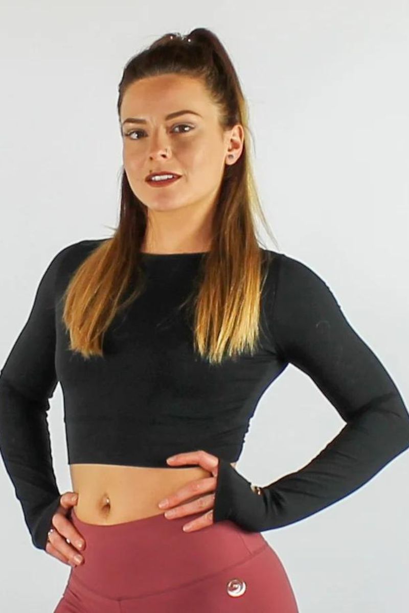 • Thumb holes | Strappy back detailing | Long Sleeve | Crop Top
