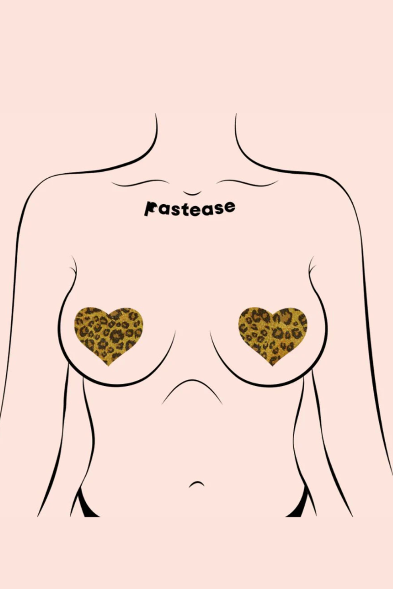 Pastease Cheetah Heart Nipple Pasties - Glittering Gold