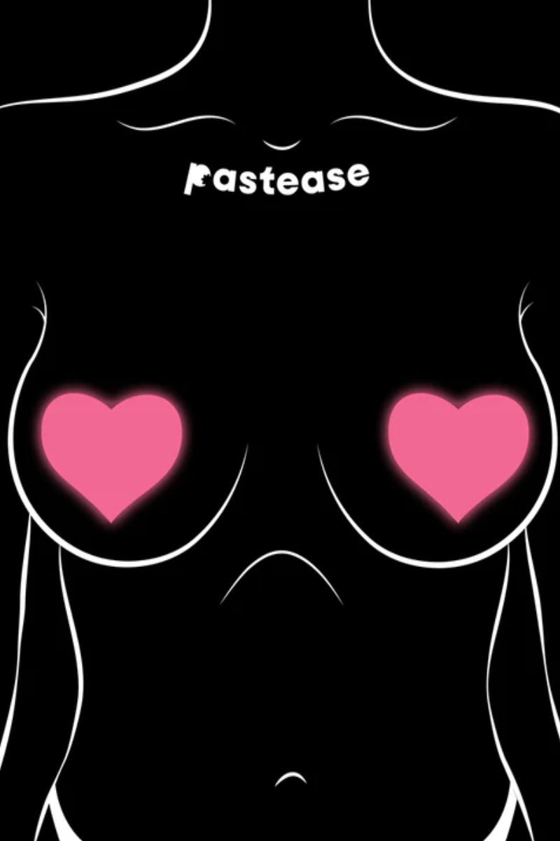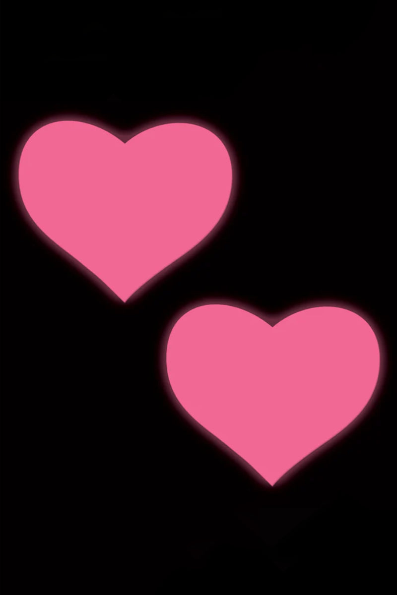 Pastease Glow in the Dark Heart Nipple Pasties - Neon Pink