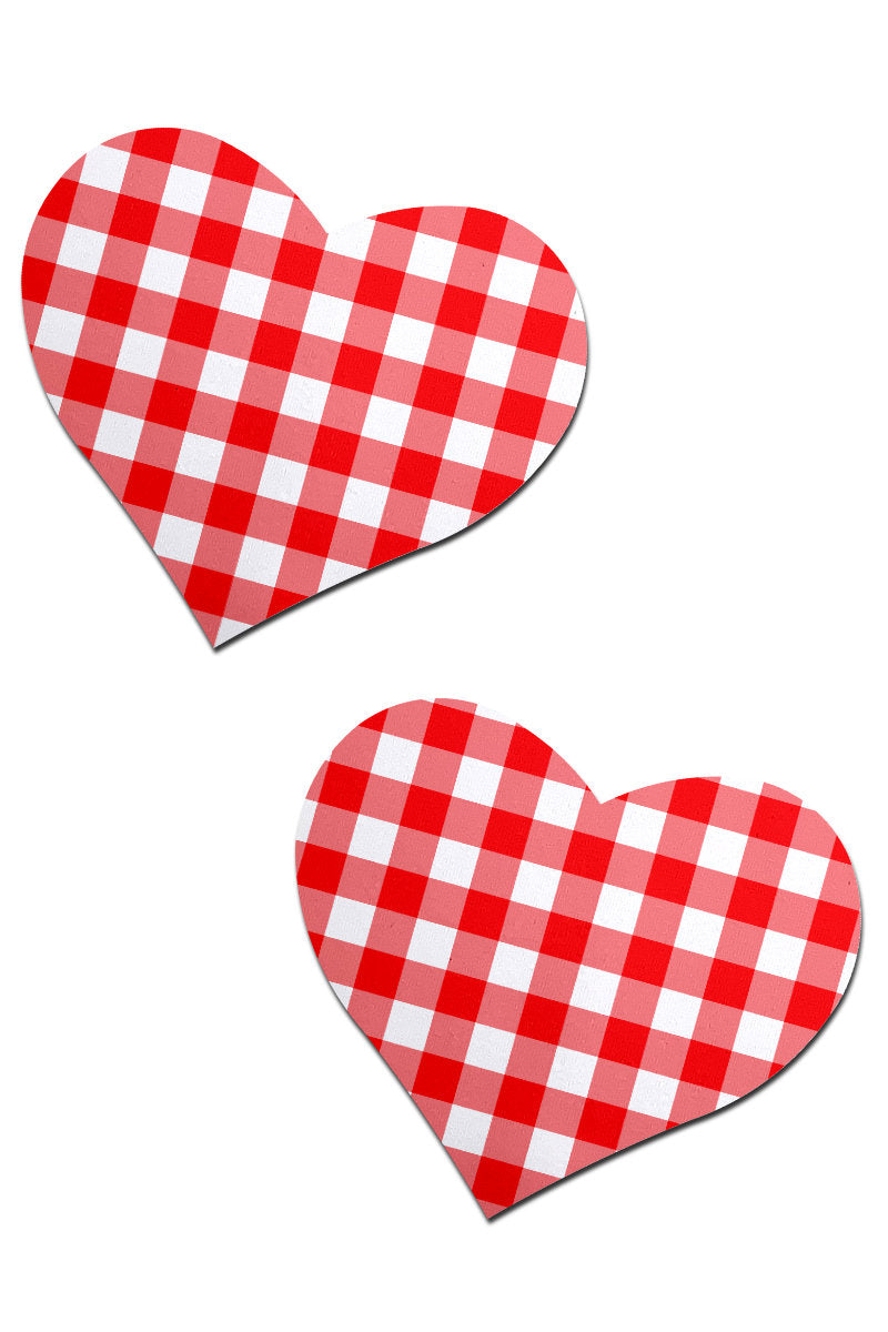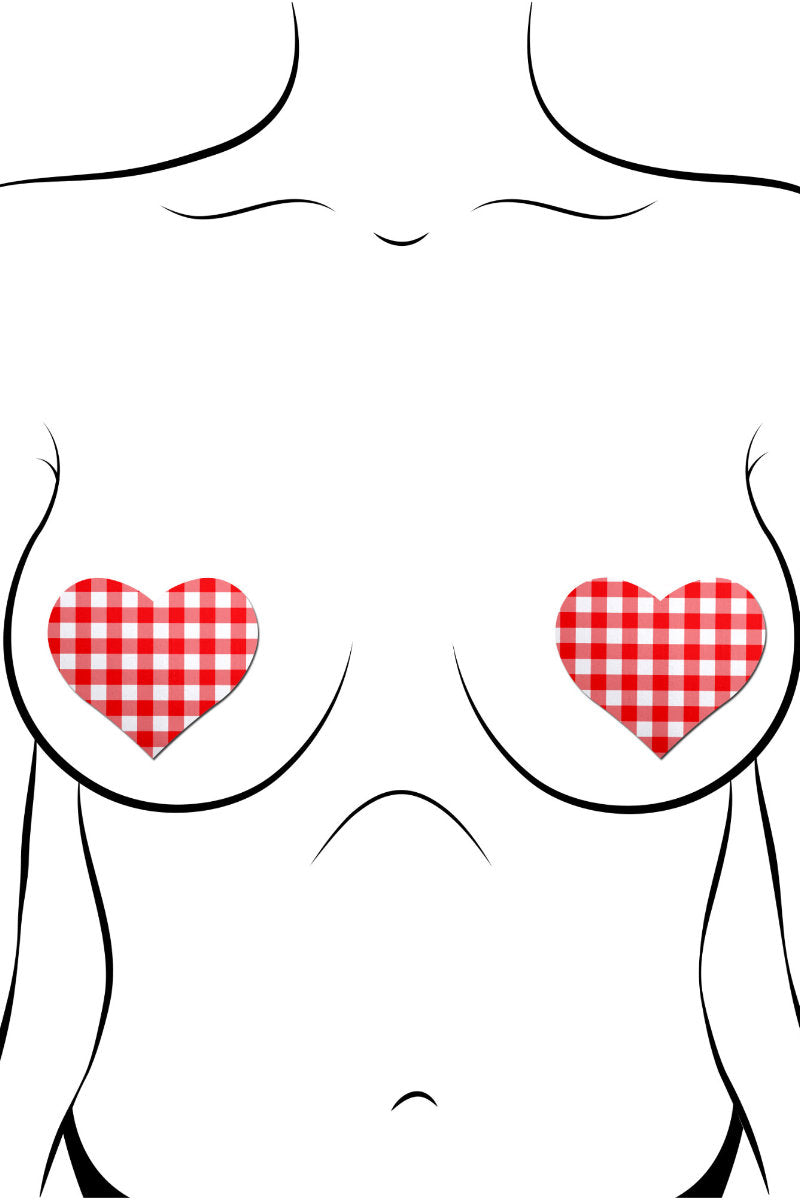 Add a charming country twist to your look with these heart-shaped red gingham nipple covers! Handmade with care, they’re latex-free, hypoallergenic, and offer generous coverage.