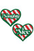 Love Green, Red and White Naughty and Nice Heart Nipple Pasties by Pastease O/S. Naughty and Nice Heart Nipple Pasties by Pastease are hand made in the USA of soft form fitting material that forms seamlessly to curves and resists wrinkling over hardening nipples. Just peel and stick on clean, dry skin.
