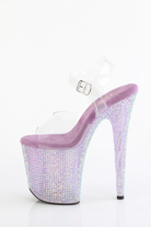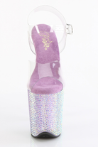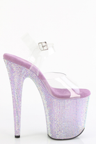 Glitter like you mean it. These stilettos let the lavender bejewelled base steal the spotlight with every step. The bold 8" heel meets a sturdy 4" platform for balance, finished with a clear ankle strap for that barely-there touch.