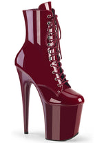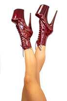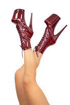 4 inch platform | Patent Burgundy Platform | Lace-Up Front Ankle Boot | Inside Zip Closure