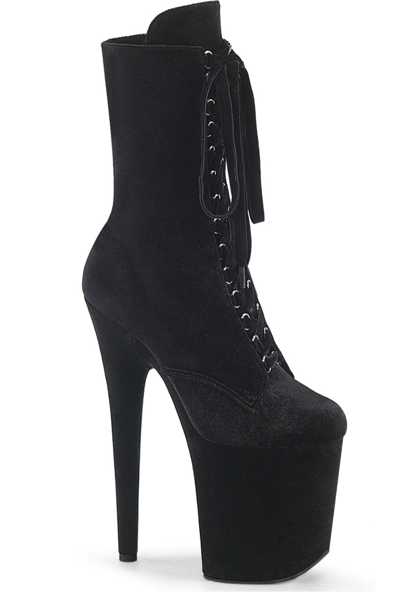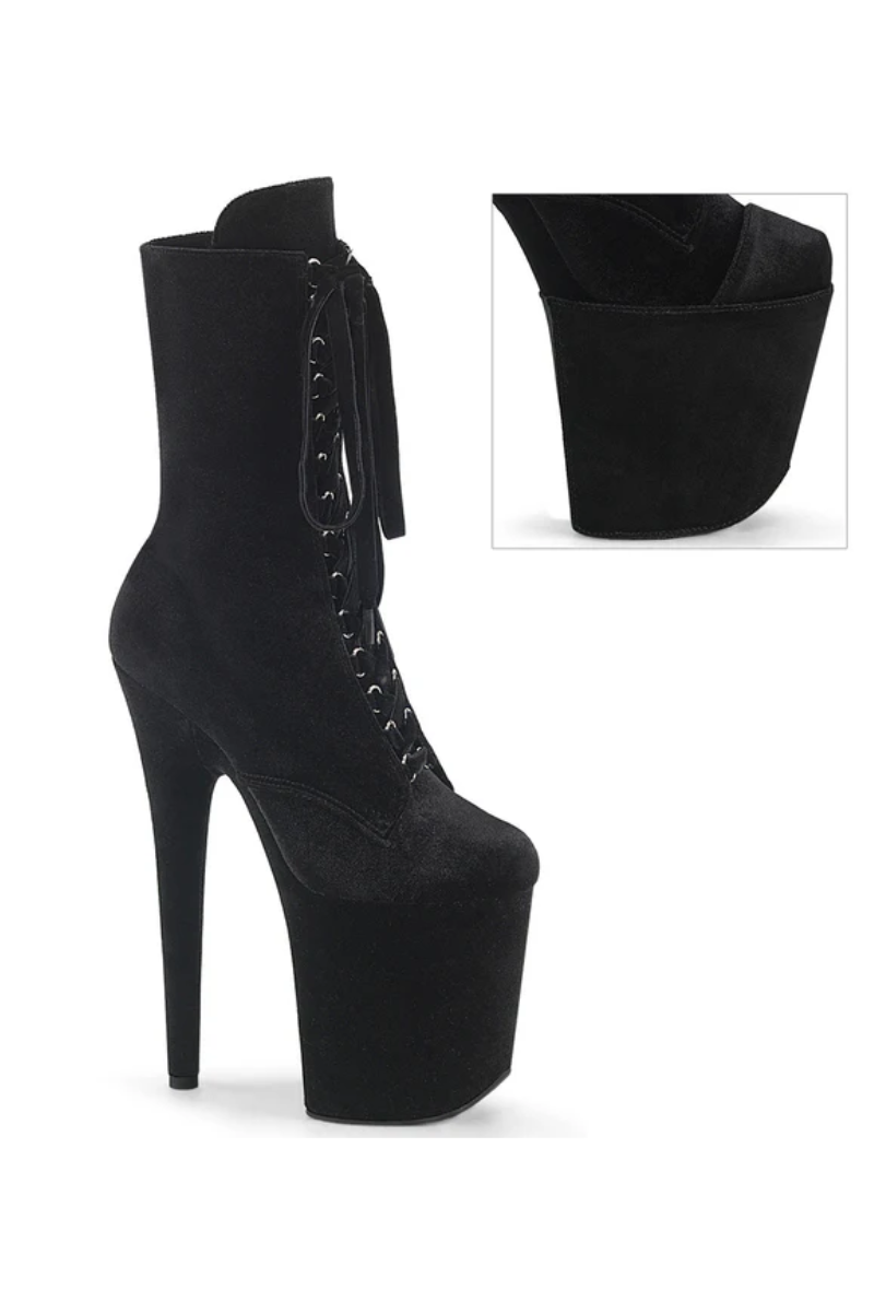 Pleaser USA Flamingo-1045VEL 8inch Boots + Protectors - Black Velvet