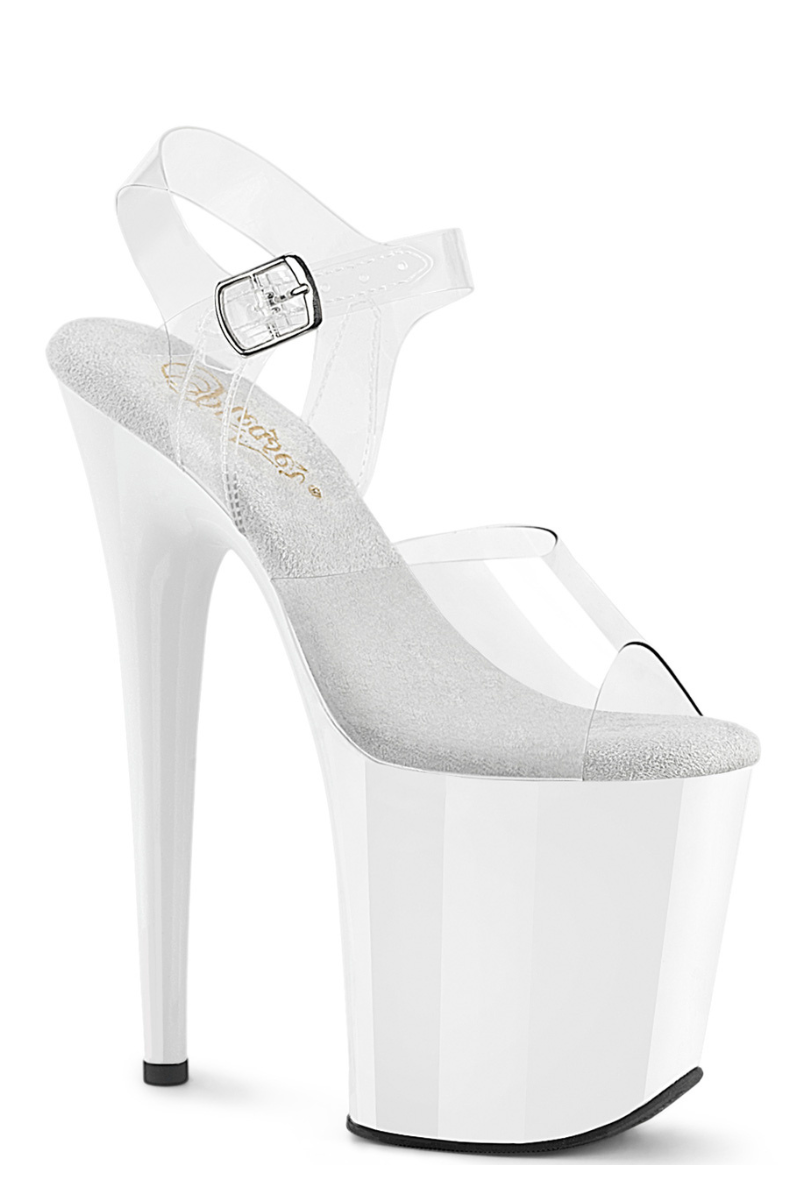 Glam Up with Pleaser USA Flamingo-808 8inch Pleasers: Step into your power and shine like the superstar you are! 🌟 With their vegan magic, 8-inch heels, and 4-inch platforms, these babies will have you twirling in confidence. Clear straps and a glossy-plated base add that extra sprinkle of spice, making every move unforgettable.