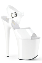 • 8 inch heel | 4 inch platform | white plastic ankle strap | with white base