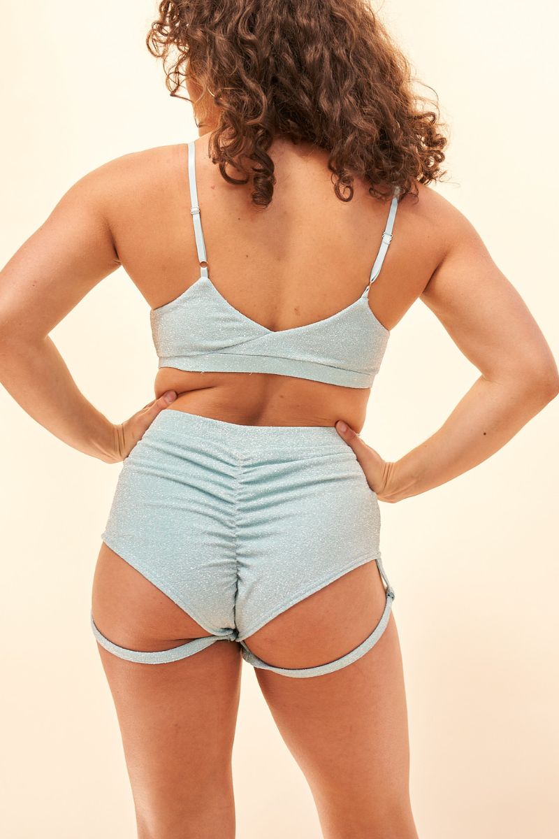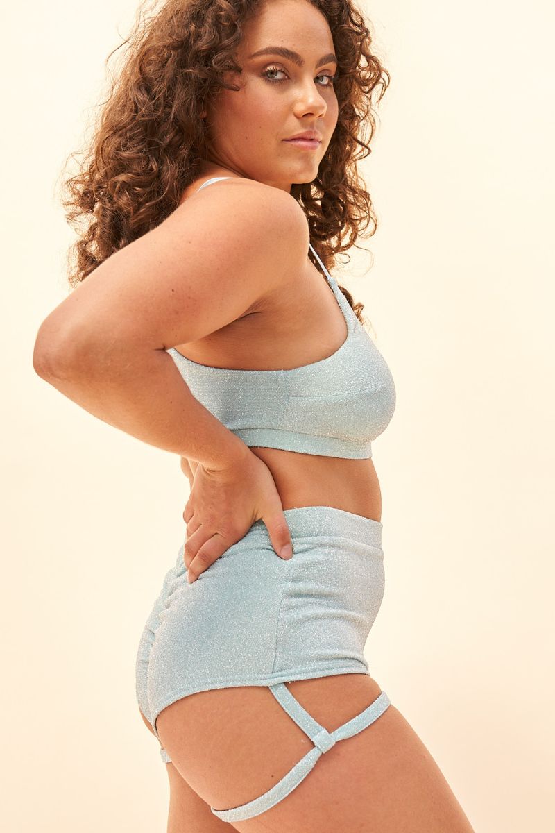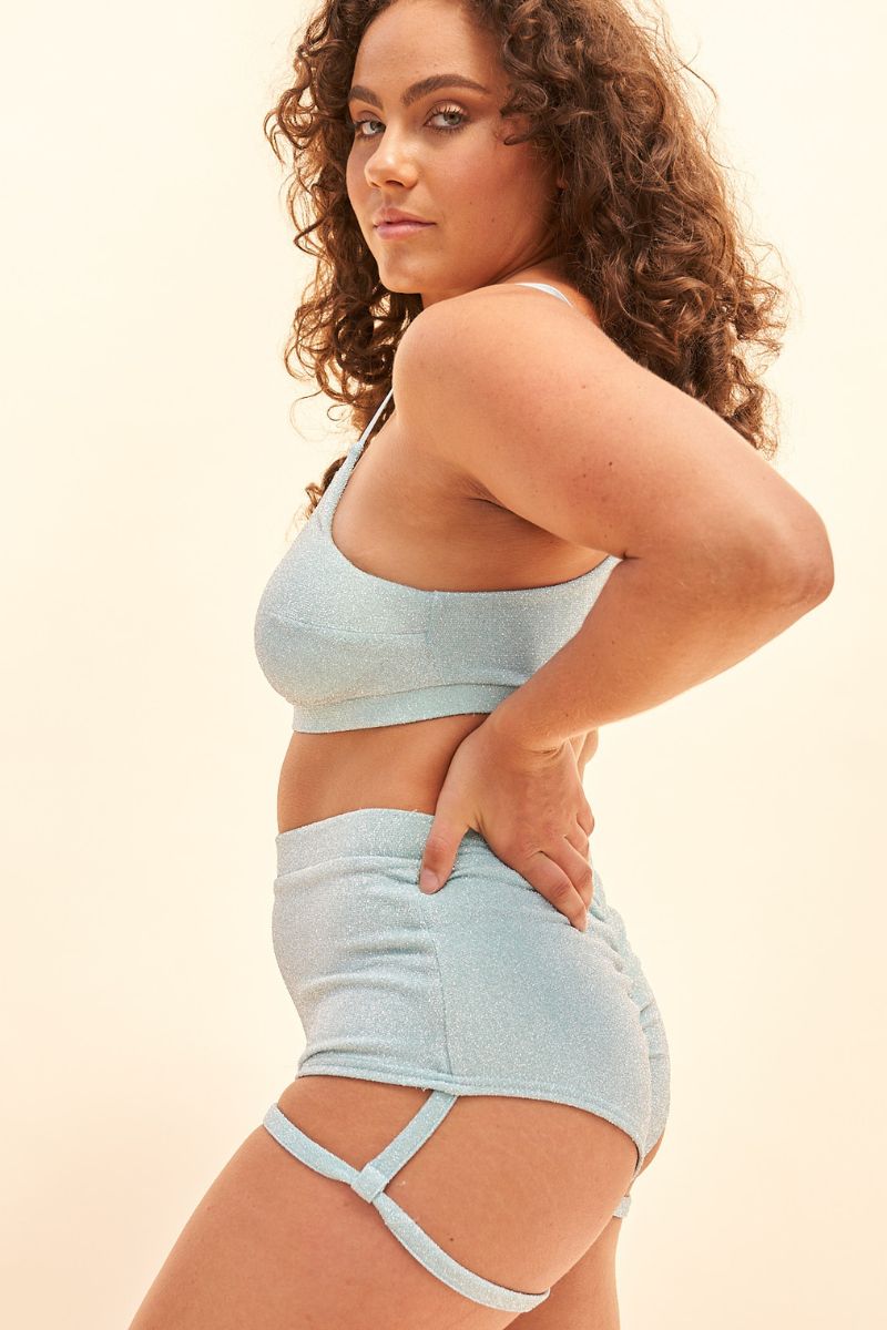 Lunalae Lure You High Waisted Garter Shorts - Crystal Blue