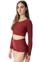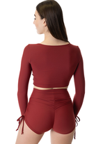 Serve up some serious drama. These rich burgundy shorts let you dictate the coverage, cinch the drawstrings for a cheeky high-leg cut or relax them for more length. Featuring buttery soft fabric, a secure thick waistband, and signature Dragonfly embroidery, it’s versatile styling that feels as luxurious as it looks.