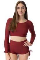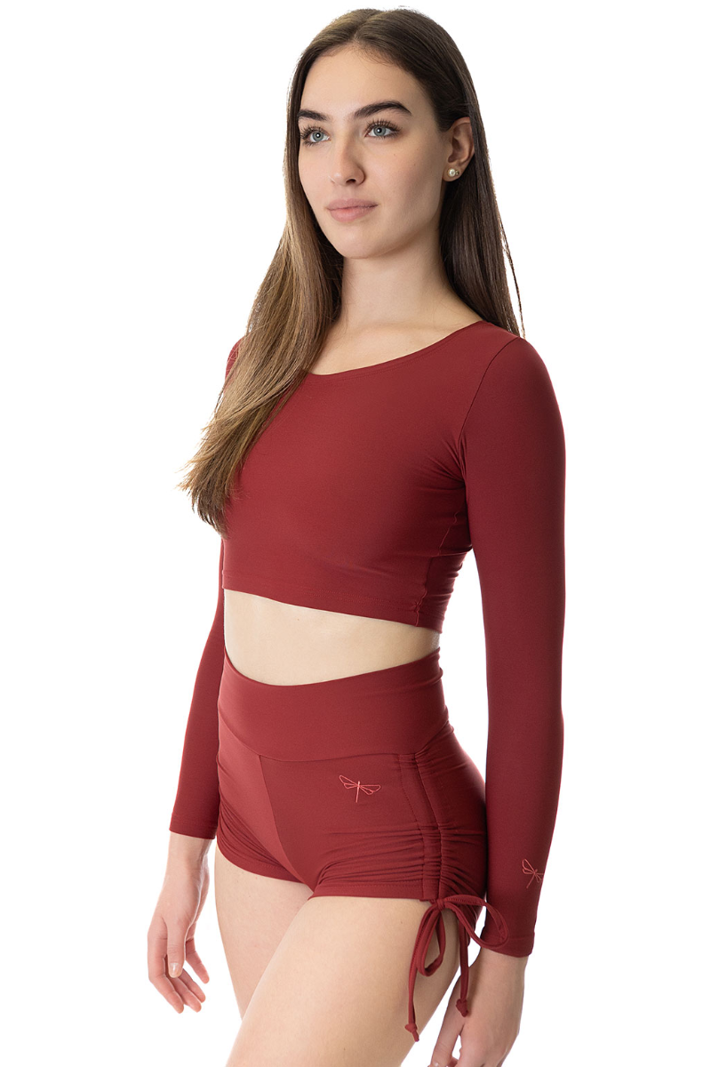 Mix and match with any Dragonfly burgundy tops. Styled here with Pavi Crop Top and Rachel Mesh