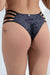 The Glamazon Bottom is made of crushed velvet in black with hologram specks and features strappy details.