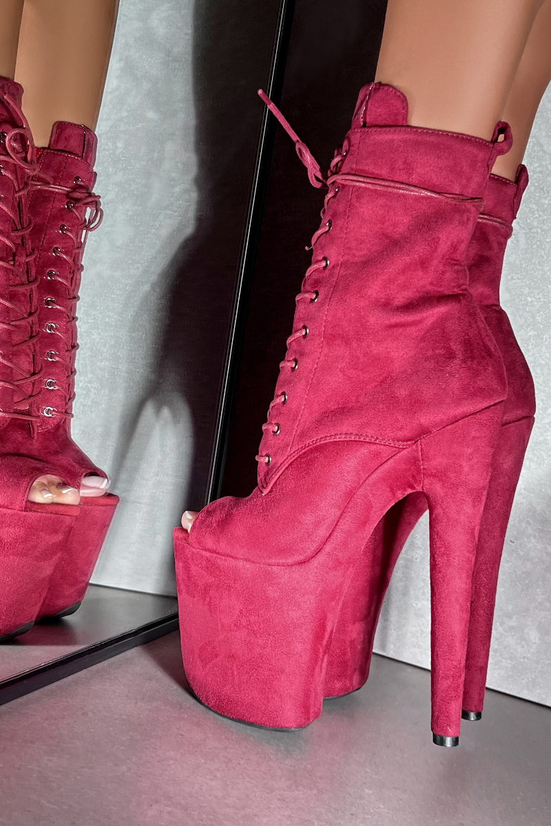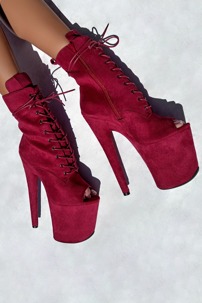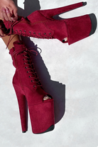 Hella Heels BabyDoll 8inch Open Toe Boots - Dark Red