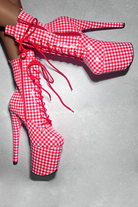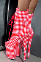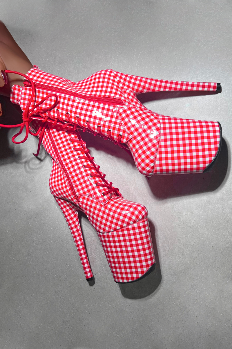 Limited Edition Red Gingham Booties Designed with a custom direct print and matching outfits to complete the full picnic fantasy ✨ 💋 Good girls wear gingham, Baddies wear the full gingham fit - complete the look with Gingham collection
