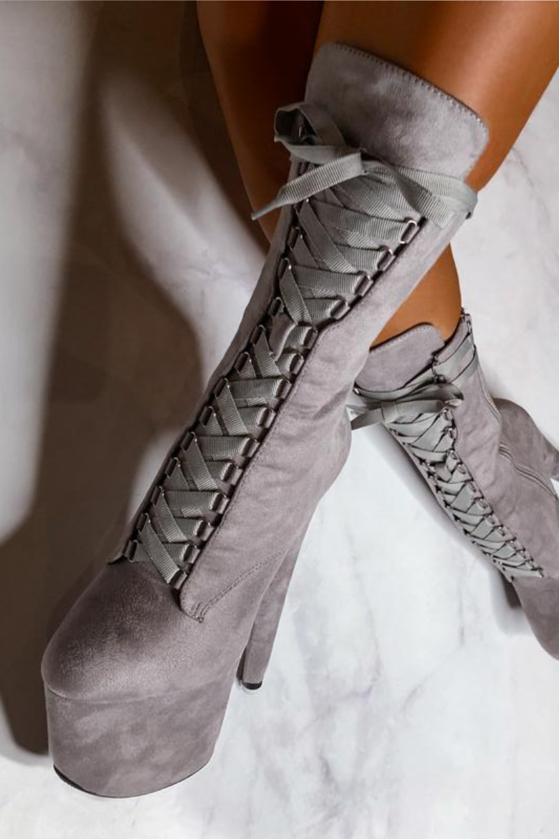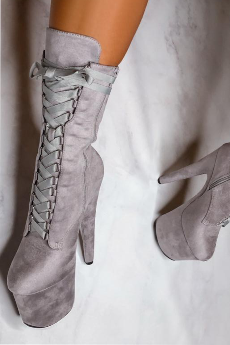 Hella Heels High BabyDoll 7inch Boots - Light Grey