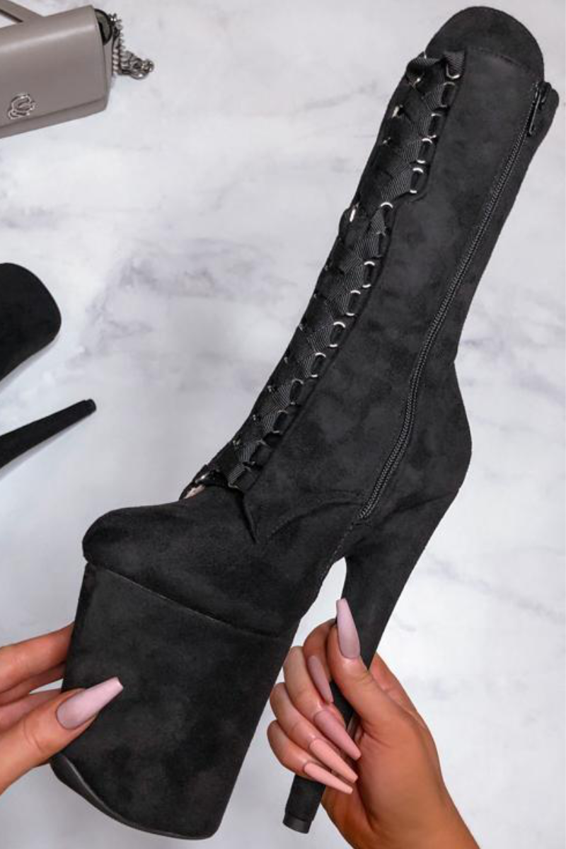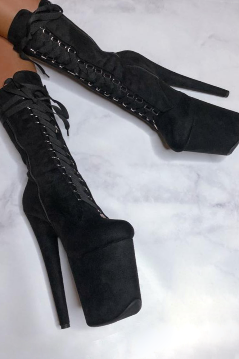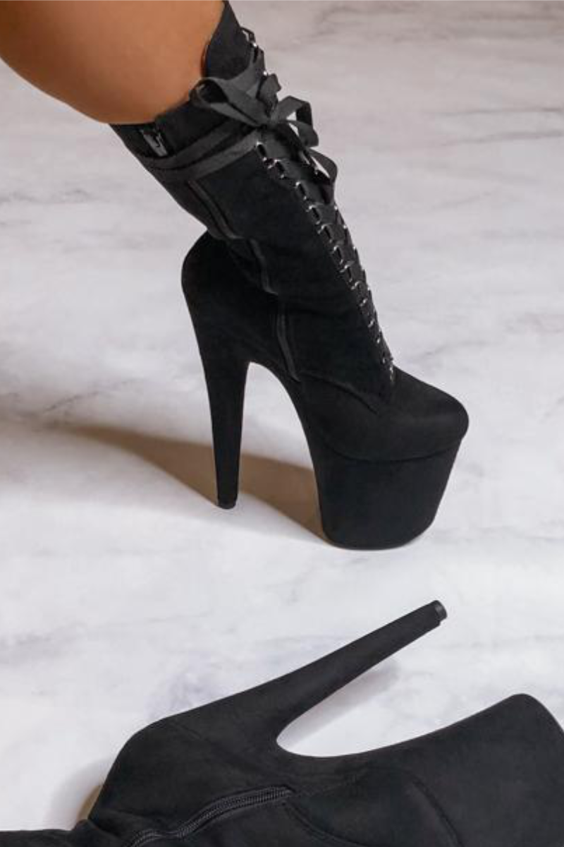 • Faux Suede | Ribbon-esque flat lace | Pointe-Friendly Platforms