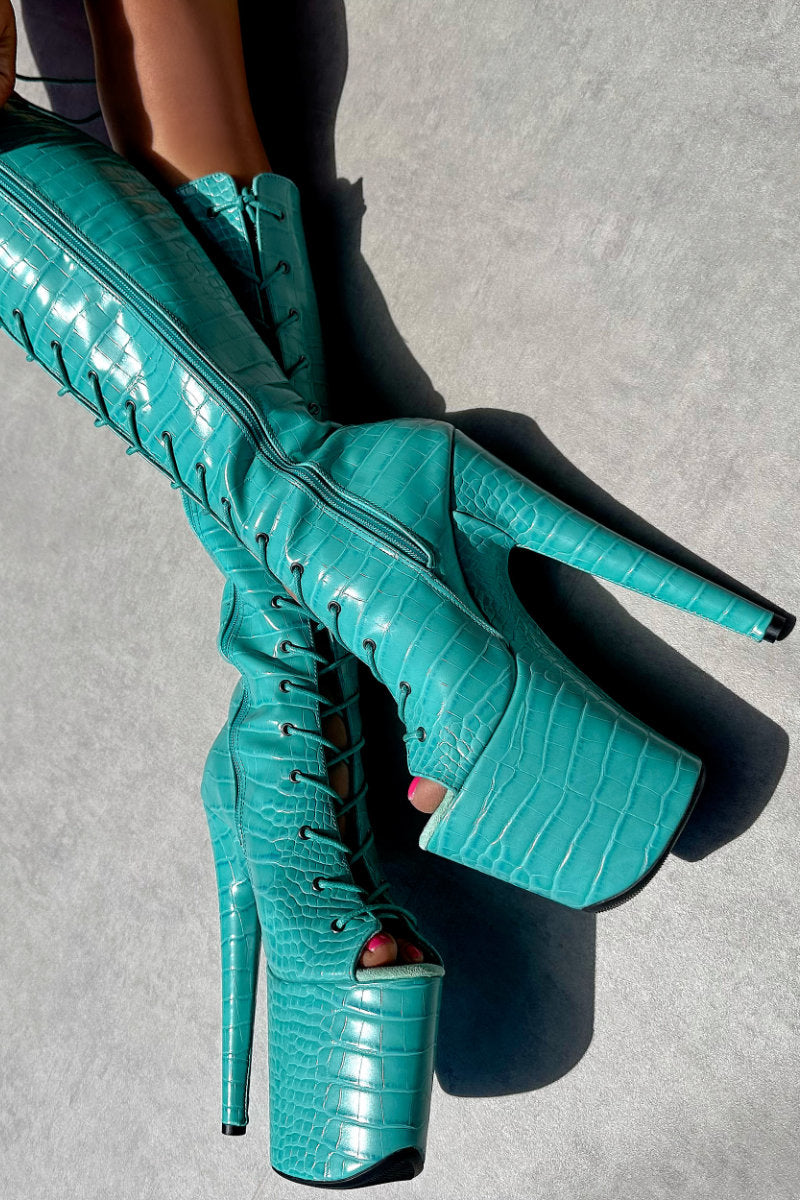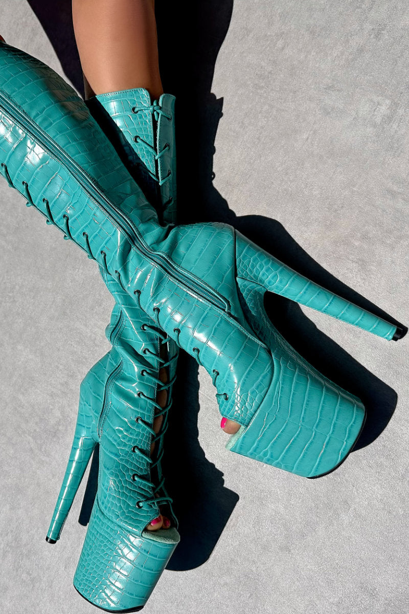 Hella Heels Jungle Open Toe Knee High 8inch Boots - Killing Eve