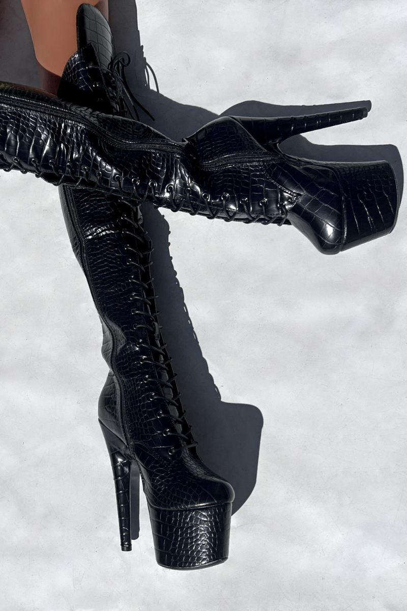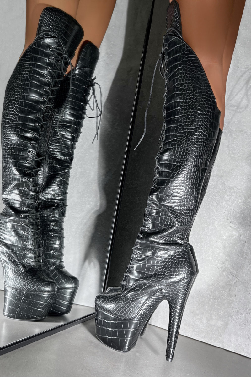 Hella Heels Jungle Over Knee 7inch Boots - Cold Blooded