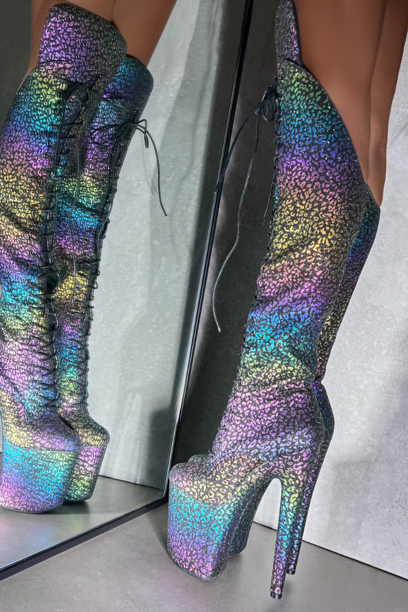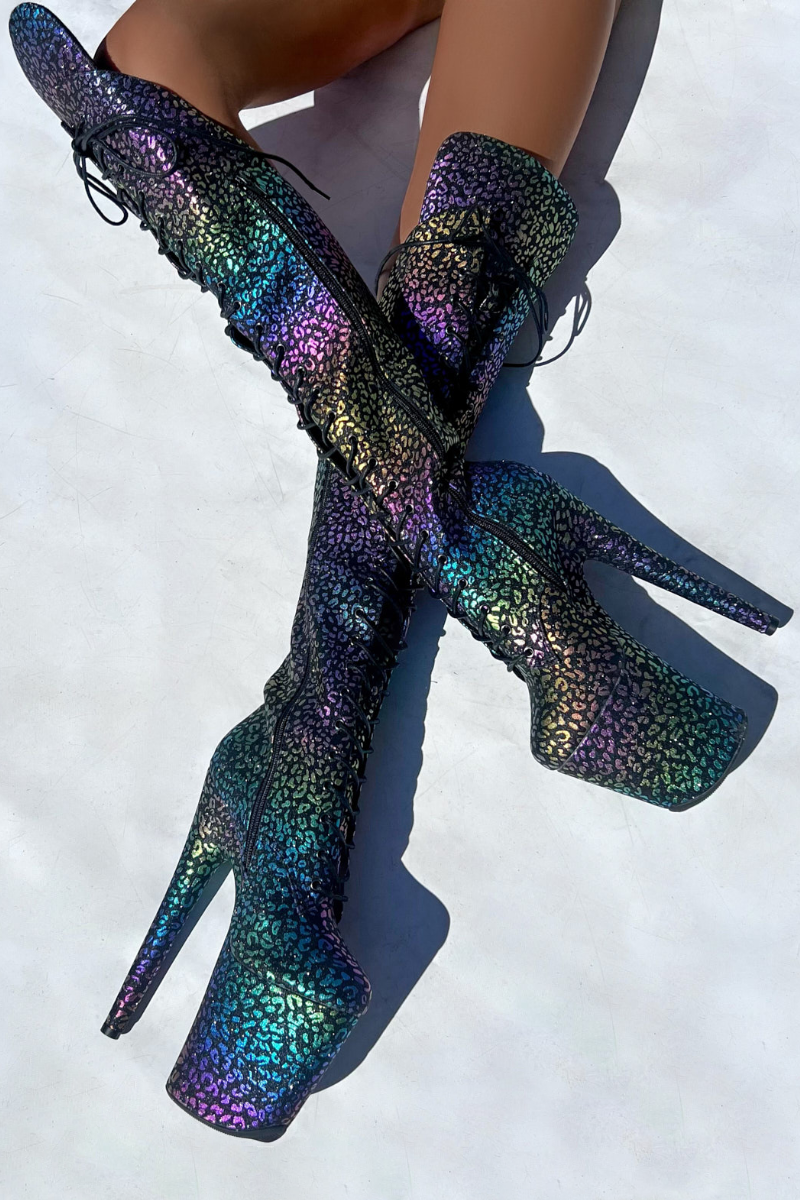 Hella Heels Jungle Over The Knee 8inch Boots - Moonlight Leopard