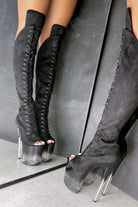 Hella Heels Ombre Open Toe Over The Knee 8inch Boots - Black
