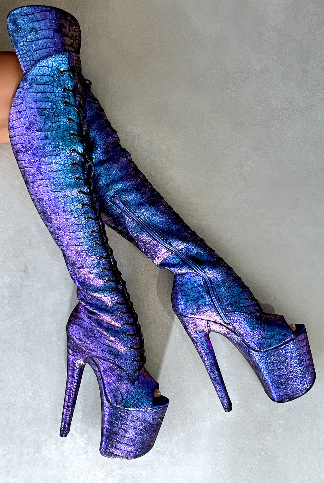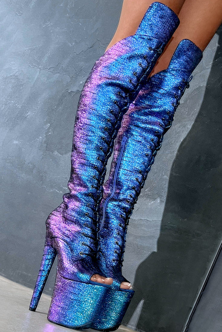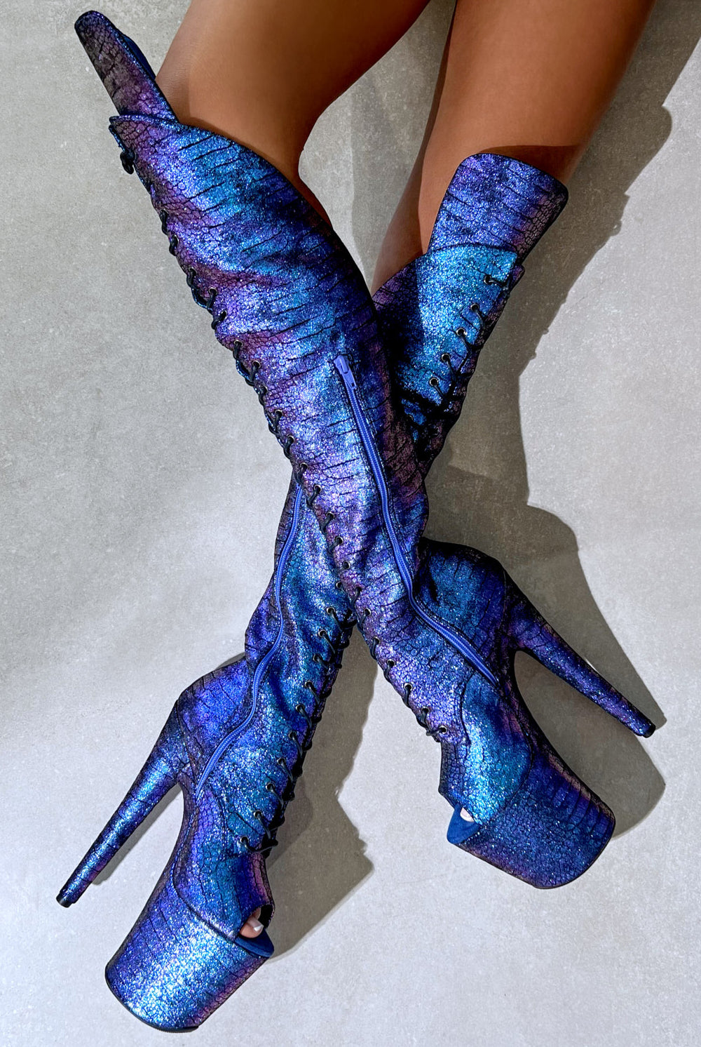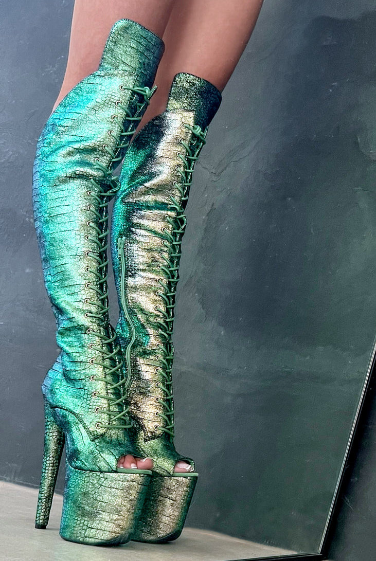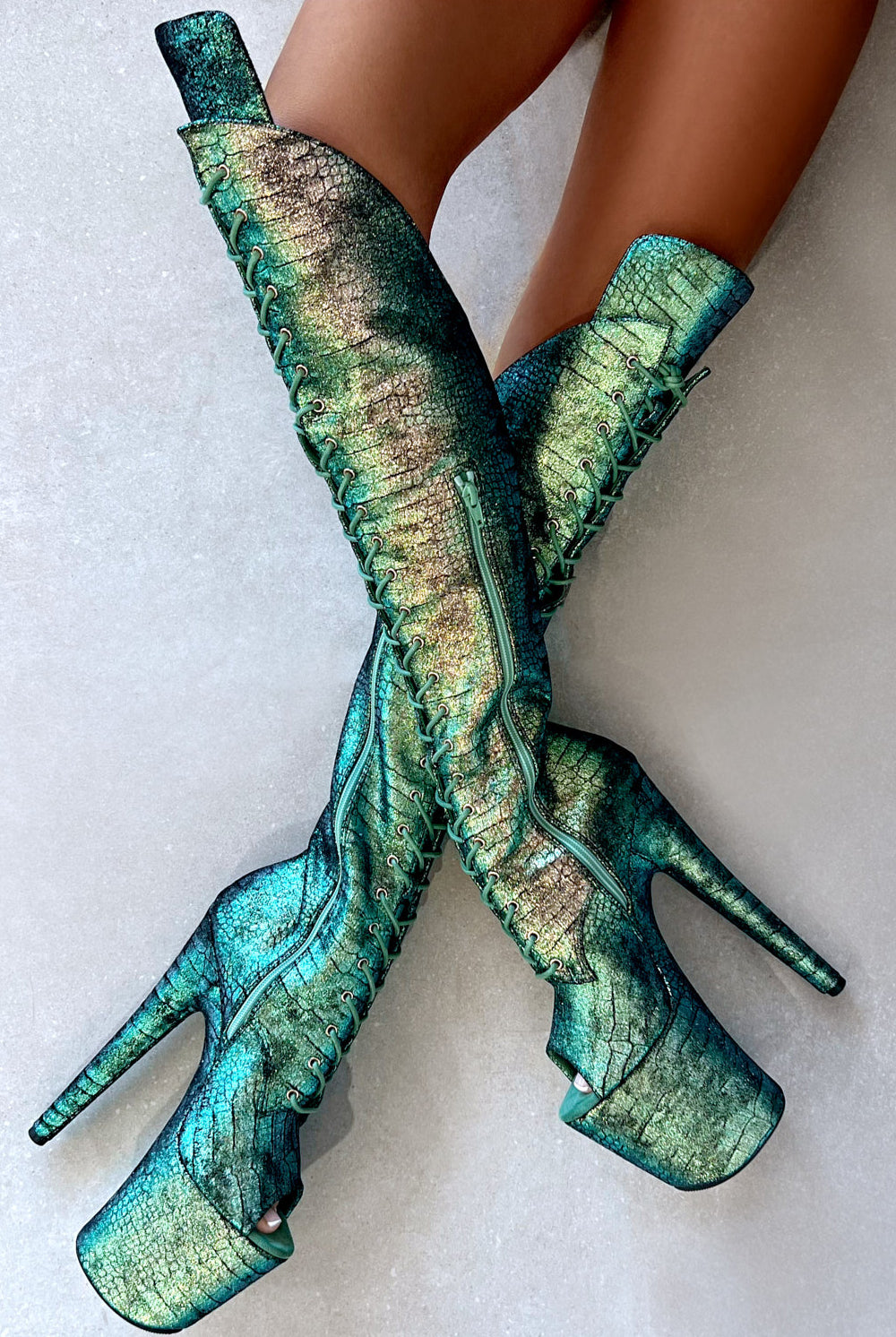 Hella Heels Mermaid Open Toe Over The Knee 8inch Boots - Dreams