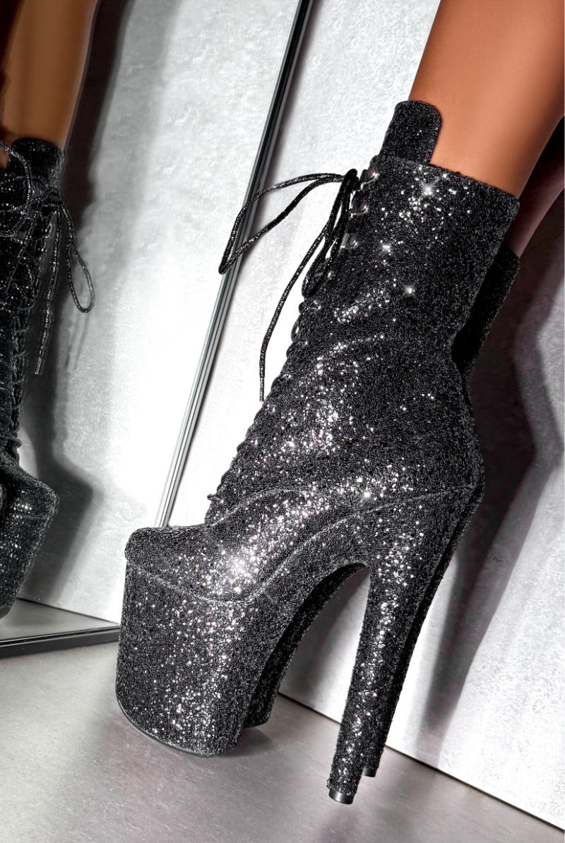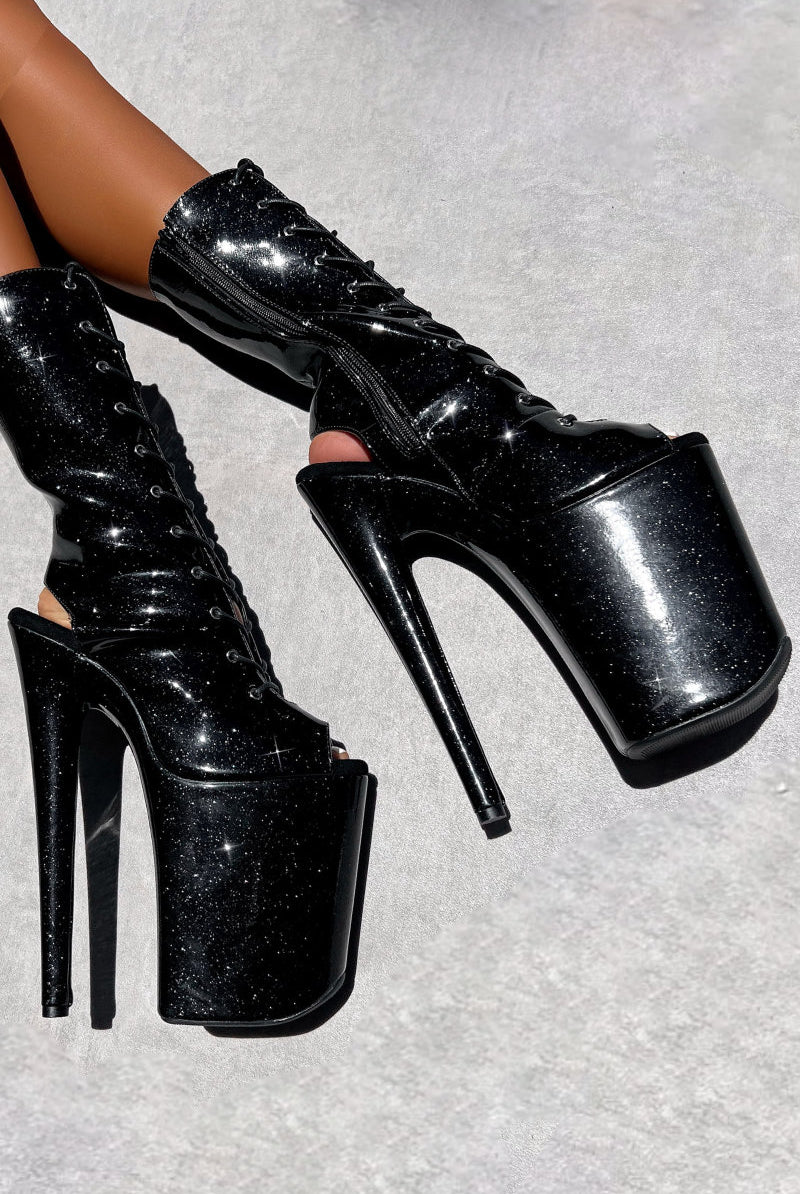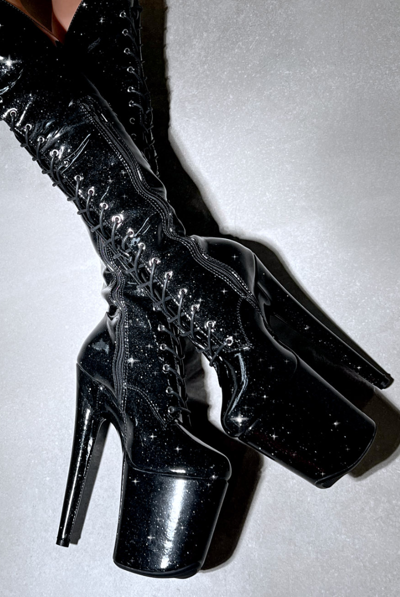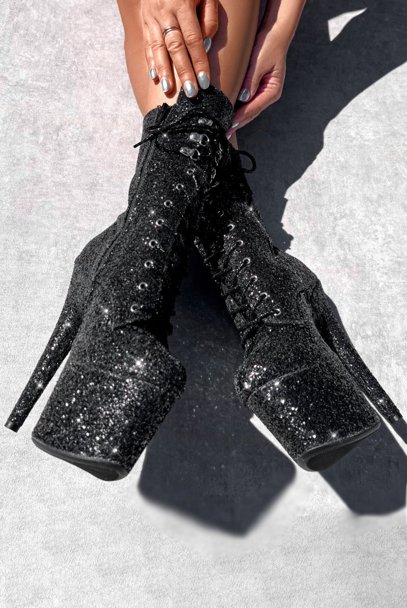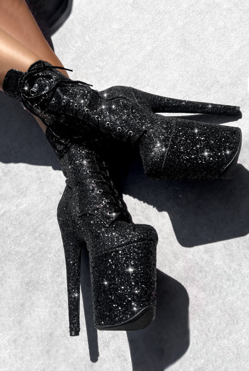 Hella Heels The Glitterati XTRA 8inch Boots - Black Caviar