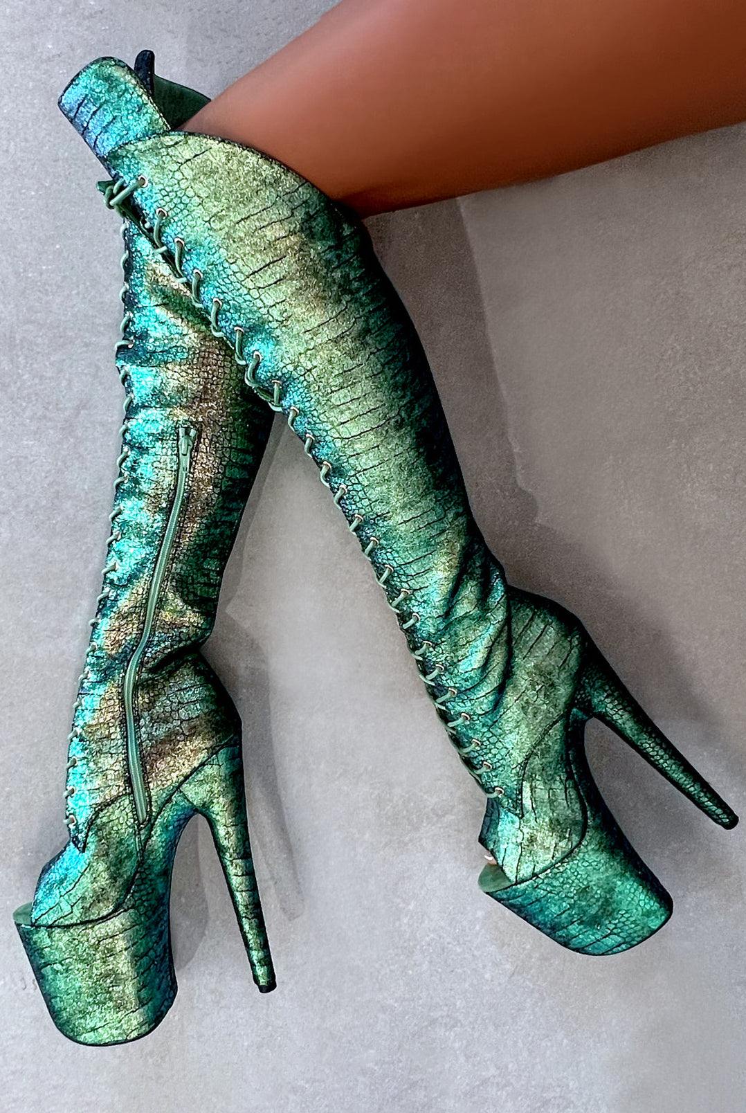 Hella Heels Jungle Over The Knee 8inch Boots New Style - Cold Blooded