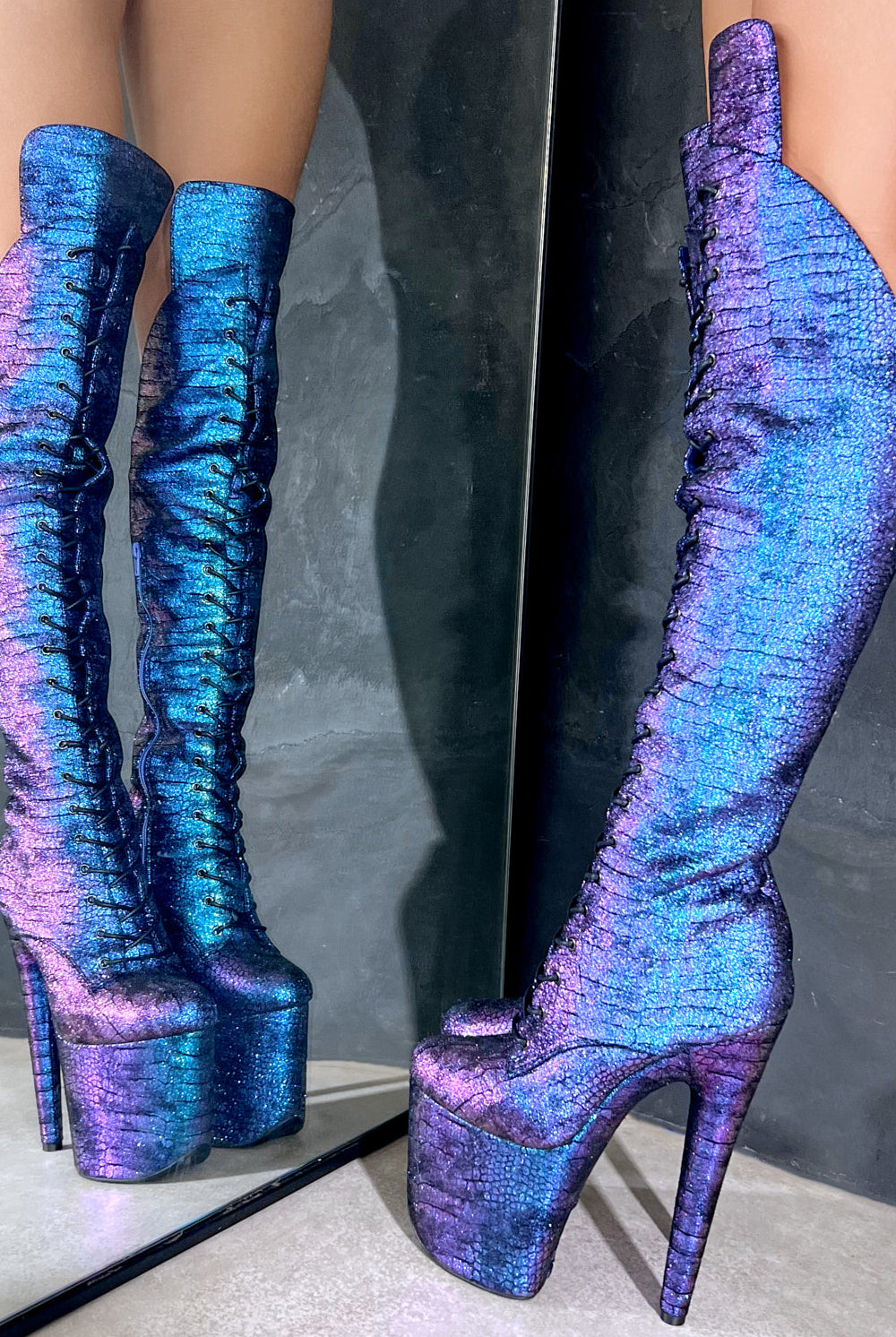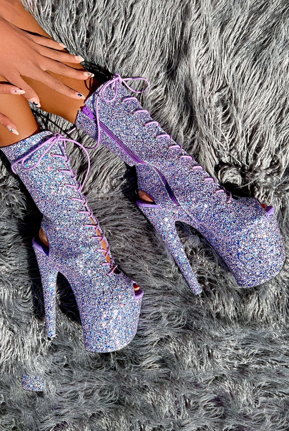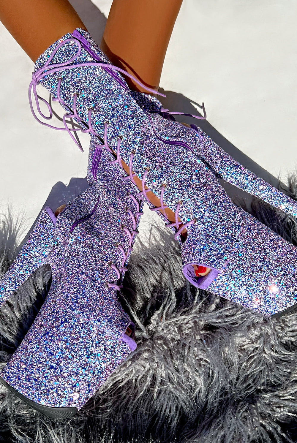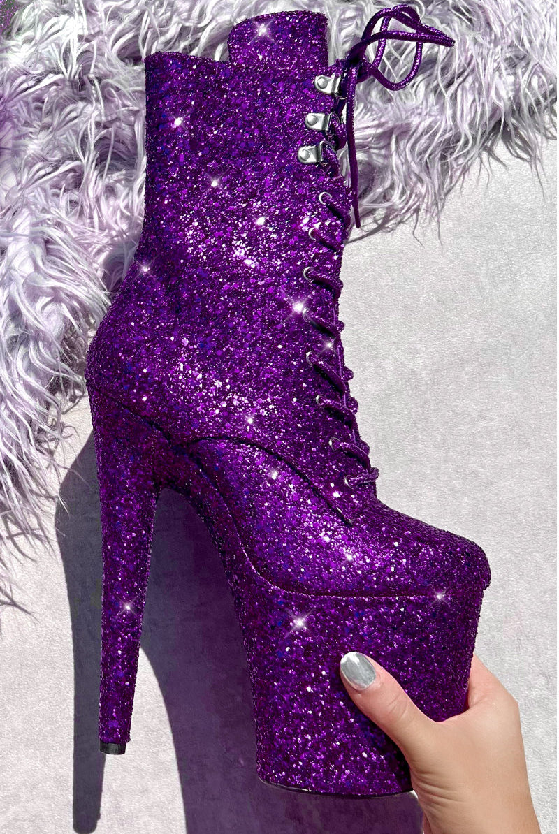 Hella Heels The Glitterati XTRA 8inch Boots - Enigma Purple