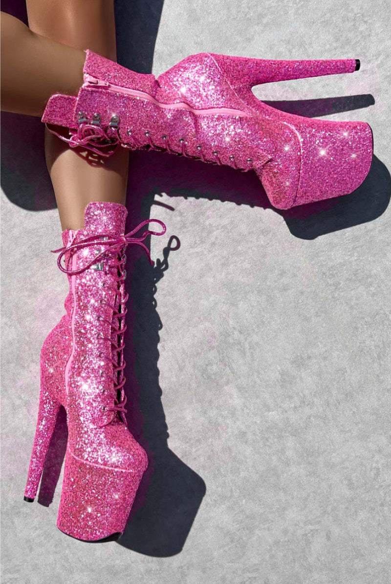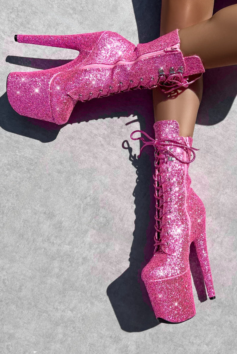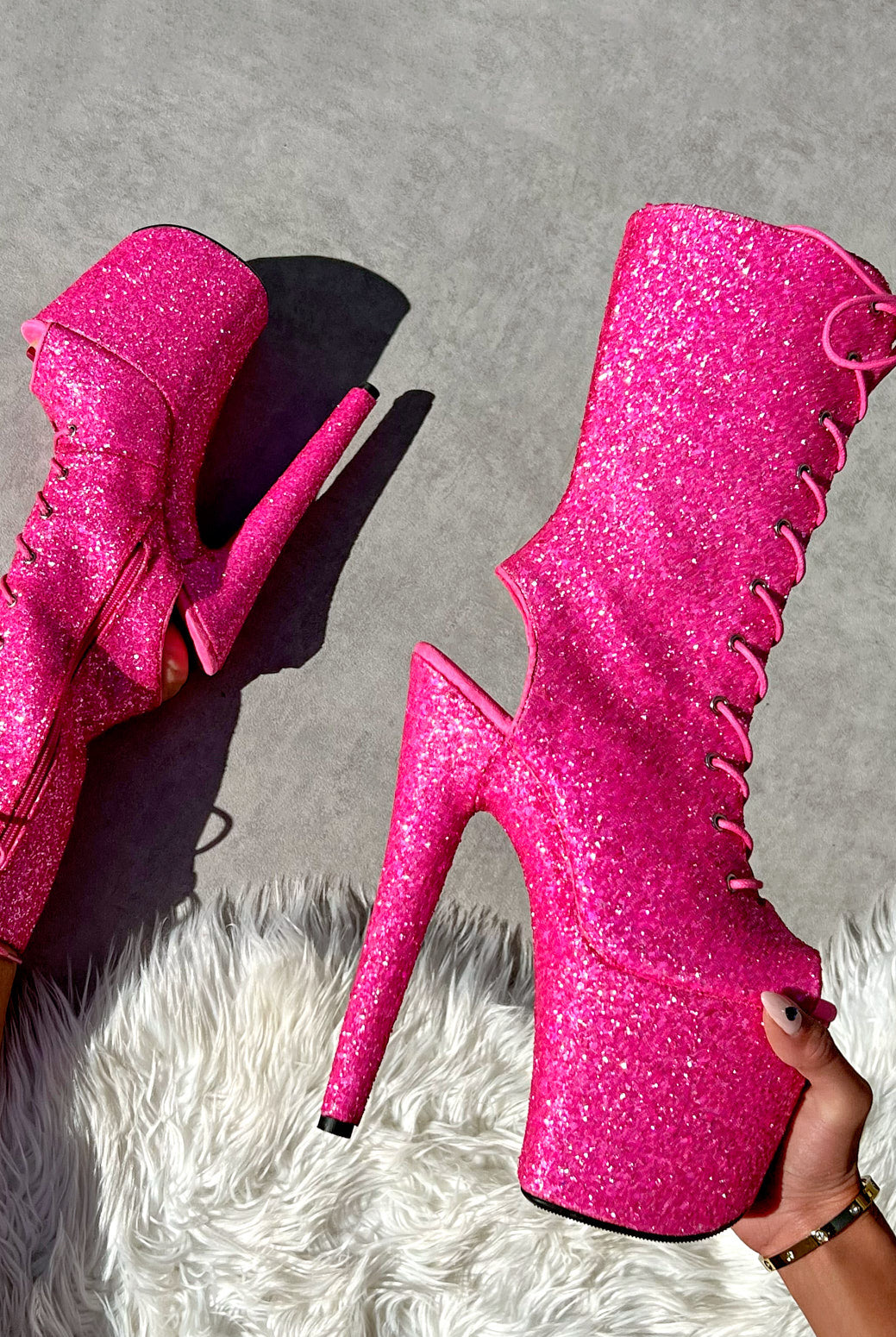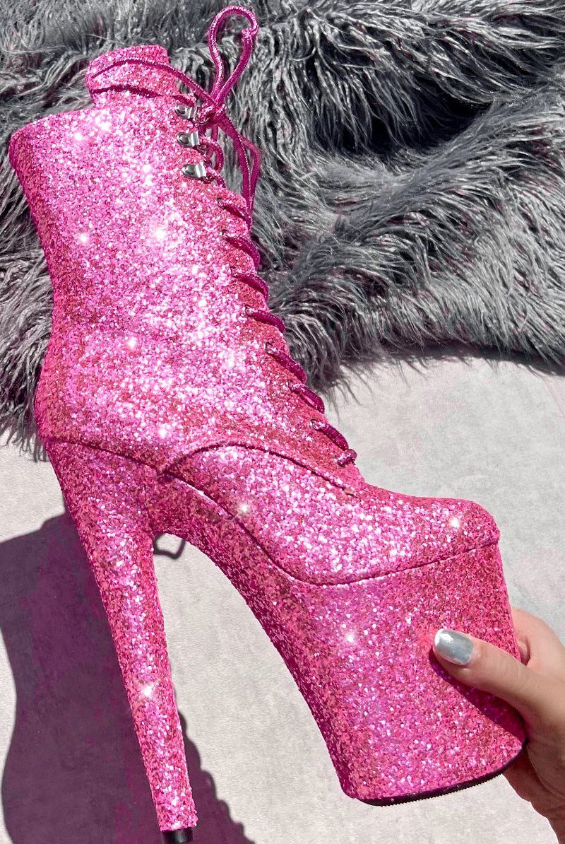 Hella Heels The Glitterati XTRA OHOT 8inch Boots - Kitty Pink
