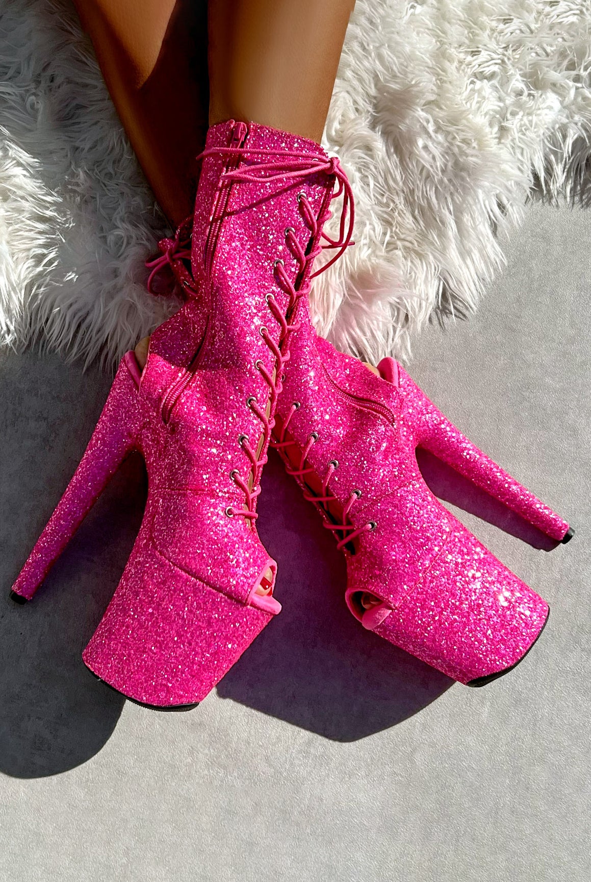 Hella Heels The Glitterati XTRA 8inch Boots - Lovergirl Pink