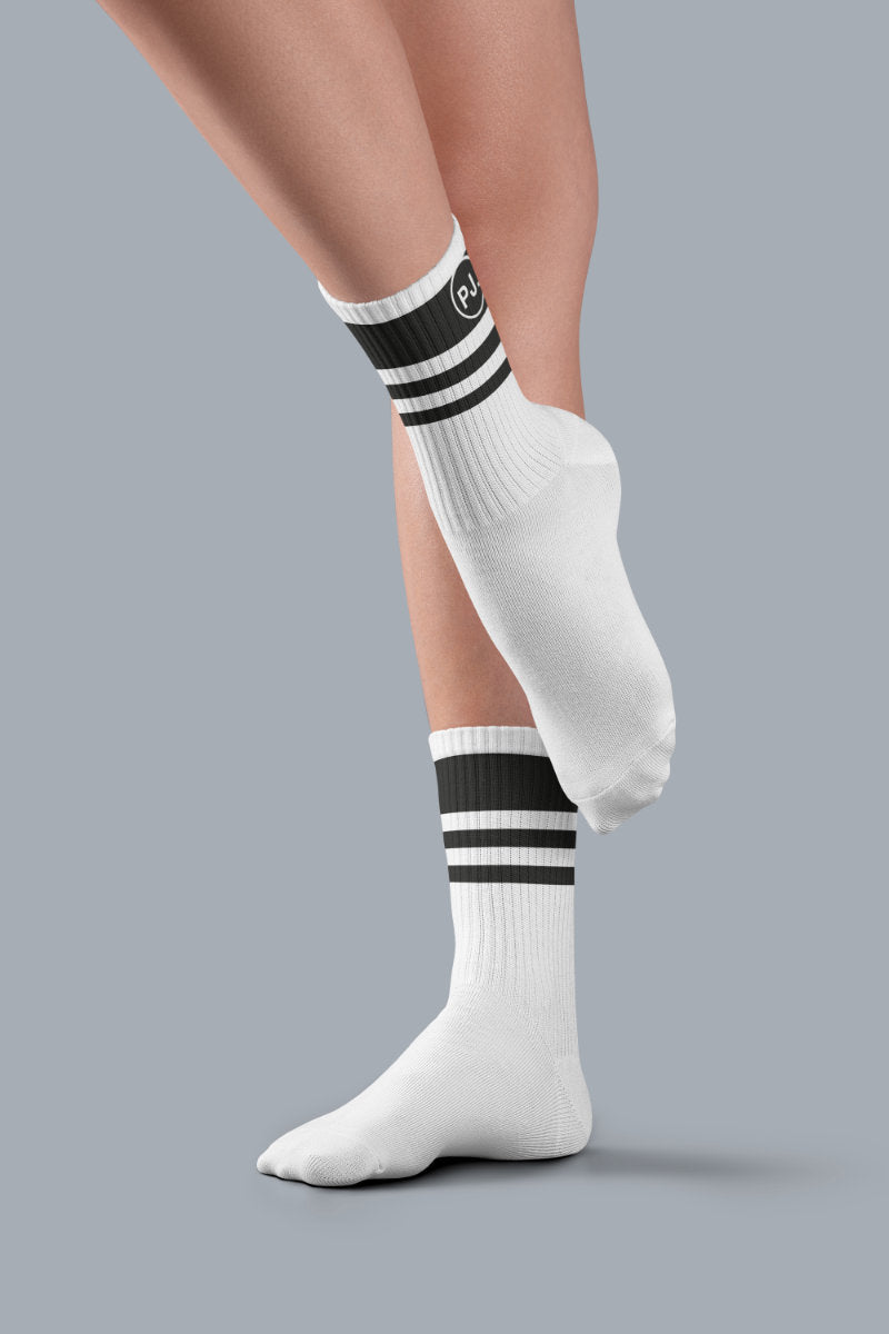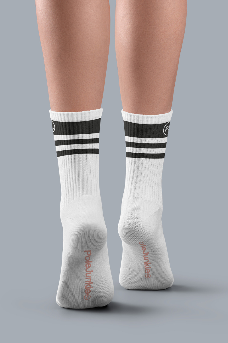 Keep it classic with Pole Junkie Banded Socks. Featuring bold black stripes, a comfy crew design, and stretchy simplicity, these socks bring effortless style and performance to every pole session.