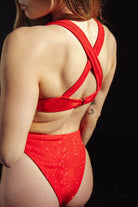 Red glitter, gold accents, and a metallic heart that hits harder than your last situationship. The RAD Heartbreaker Top features a teardrop cut-out, crisscross back, and zero padding—because your confidence doesn’t need the extra boost.