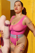 Rolling Fierce Bodysuit - Hot Pink Mesh