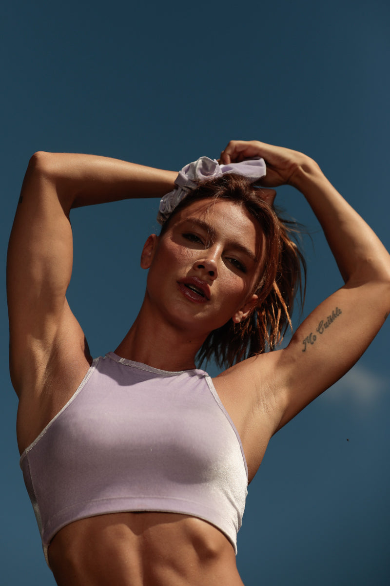 Crafted from soft velvet fabric, its snug fit and halter neck design offer fuller coverage while flaunting a chic racer back. Perfect for pole dancers who want comfort, style, and elegance in every move.