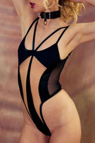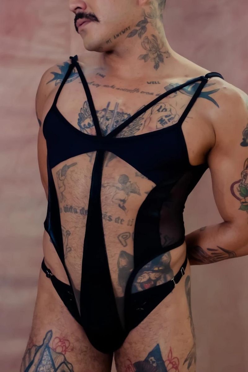 Wet Look fabric and sheer mesh panels, this bodysuit’s open back and high-cut legs scream “Strike a pose!.” 🎵🎵. Command the spotlight with fierce geometry and strappy details, owning every moment like a true icon.