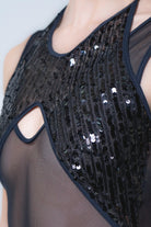 Ignite the room in the Sorte Bliss Bodysuit. With shimmering black sequins, a high-leg cut, and cheeky back, it’s designed to flatter, empower, and turn heads. Mesh details and an open back complete a look that is confidently daring.