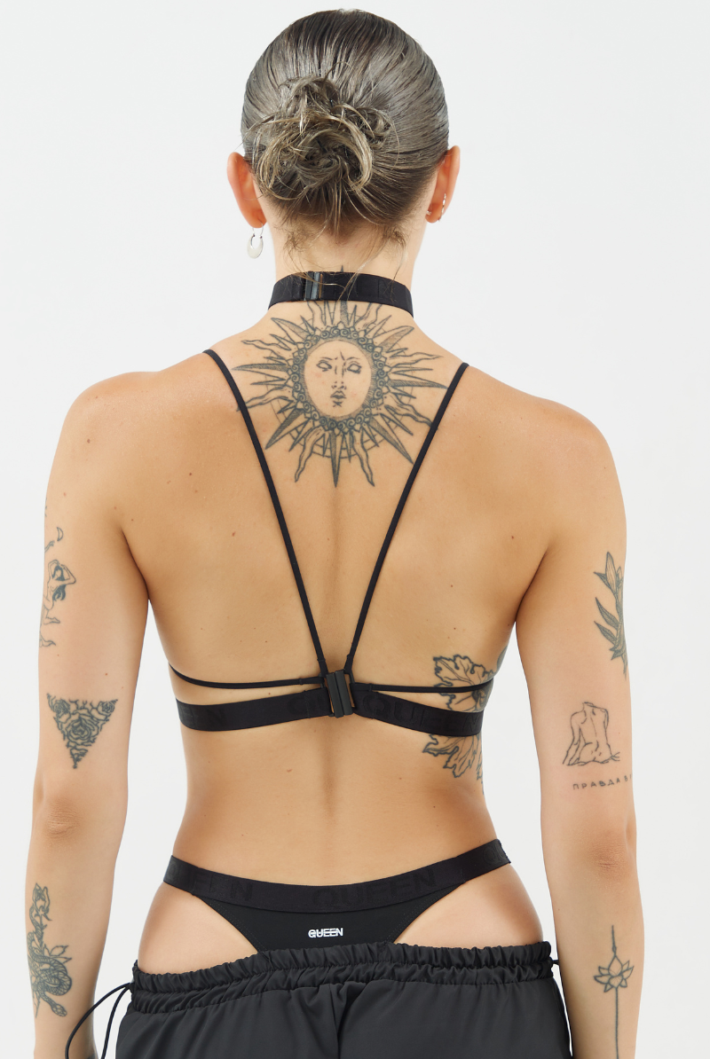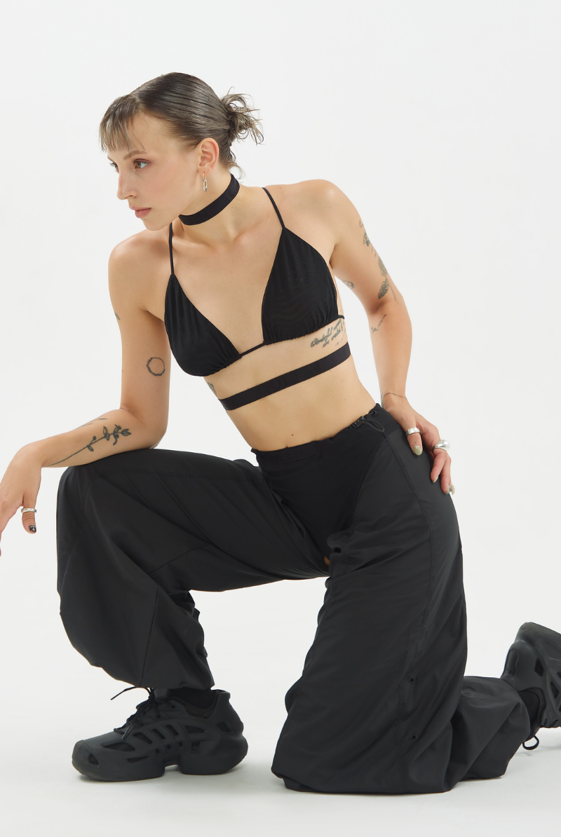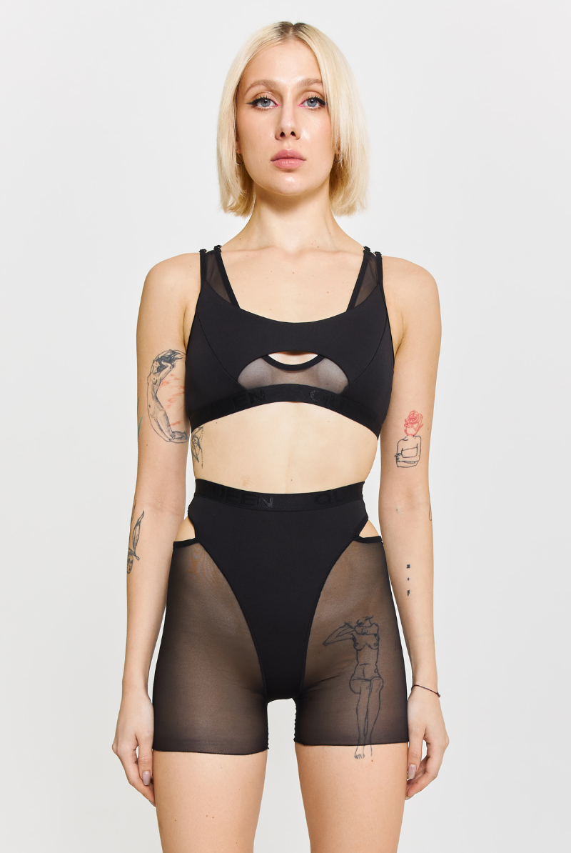 Queen Wear Geo Triangle Bralette - Black Mesh