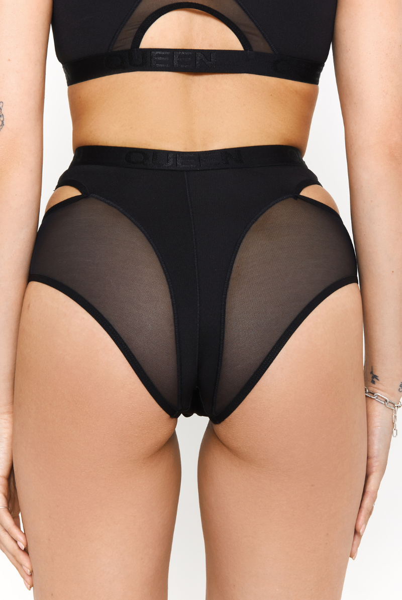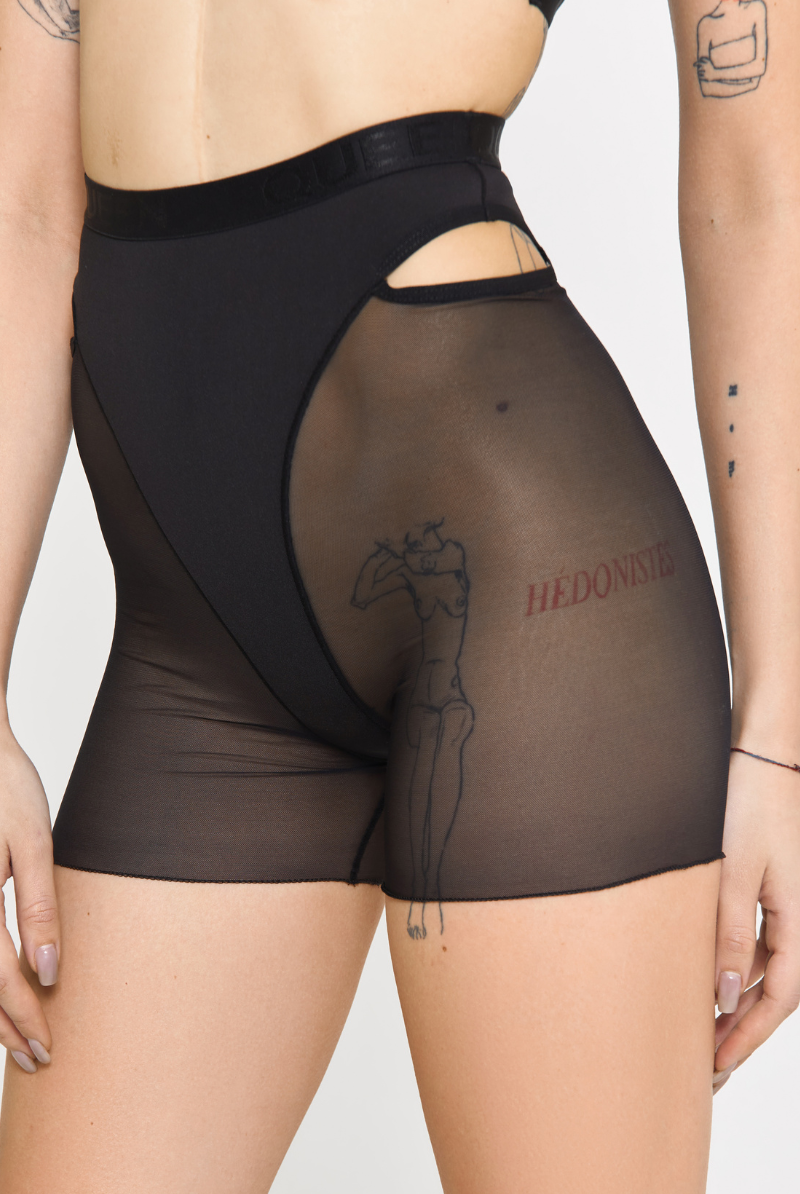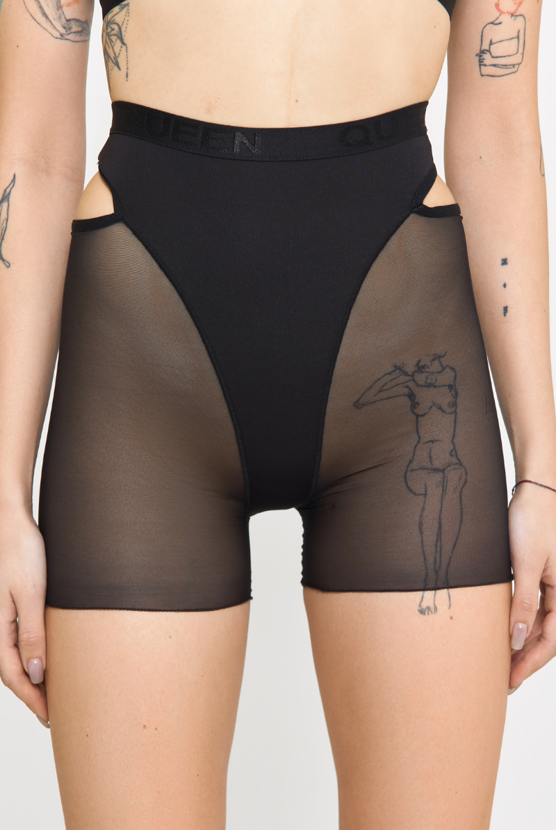 Queen Wear Candy High Waisted Shorts - Black Mesh