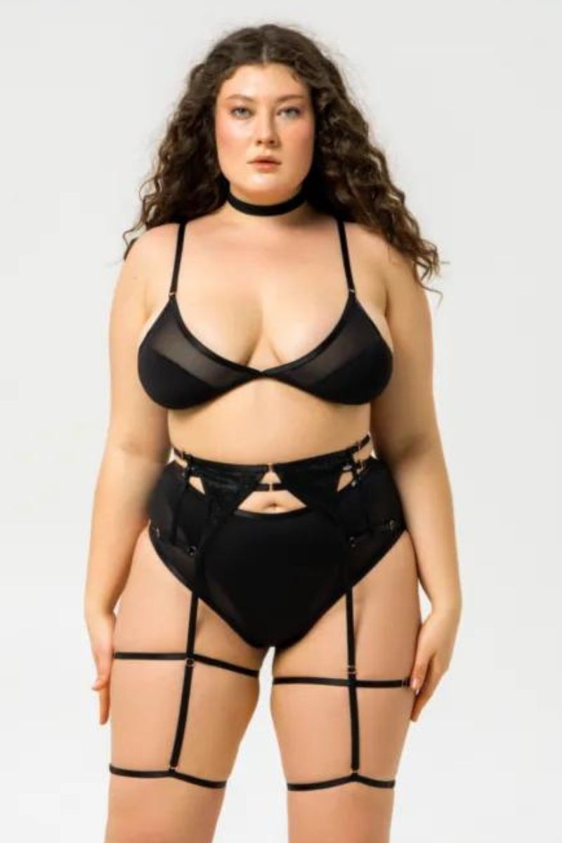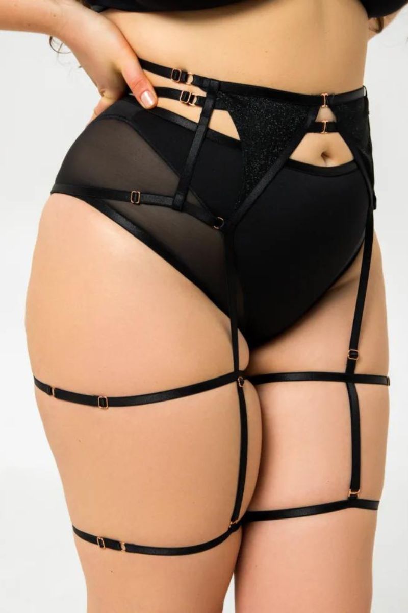 Add a touch of sparkle to your outfit with the Queen Garter Belt. Featuring black glitter panels and fully adjustable straps, this harness will take any outfit to the next level.