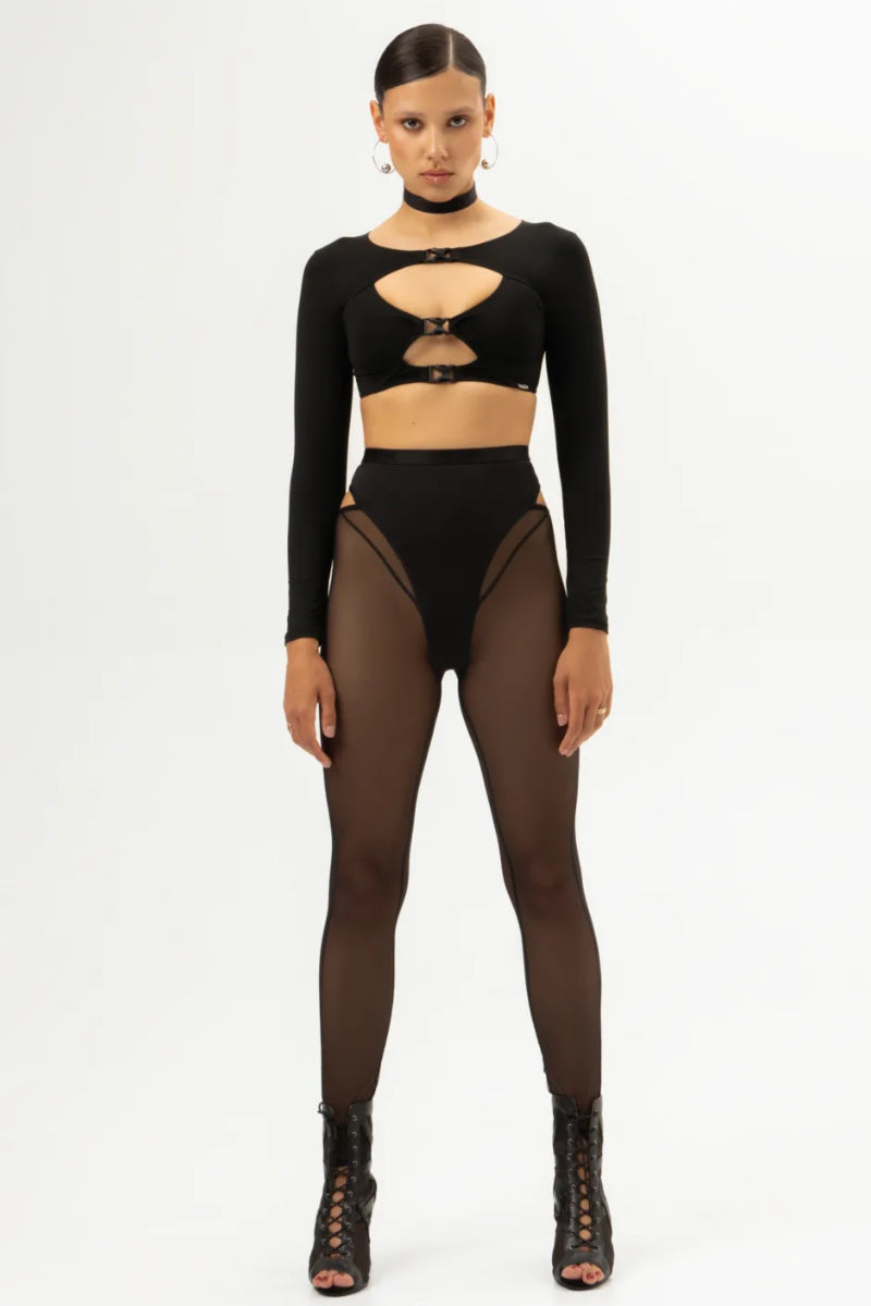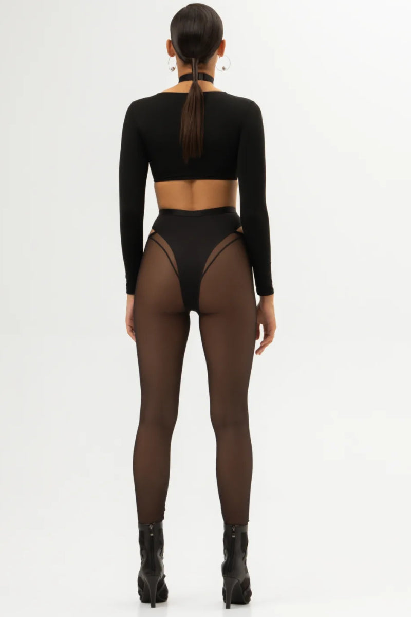 • Materials: Sheer Mesh Leggings with Jeresey Pants attached
