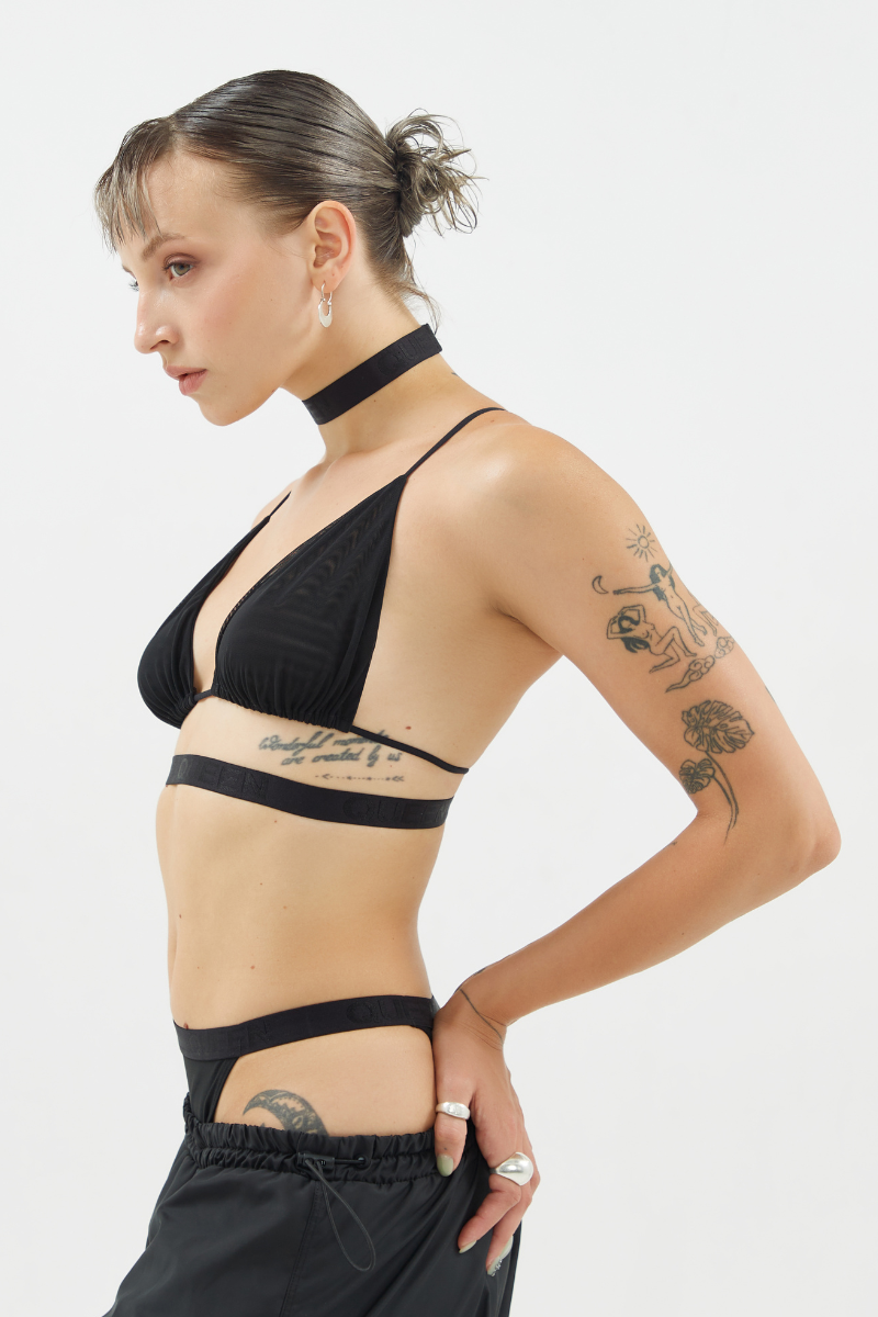 Queen Wear Geo Triangle Bralette - Black Mesh