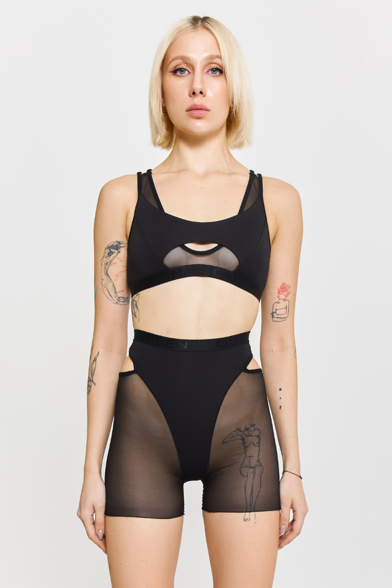 Queen Wear Geo Triangle Bralette - Black Mesh