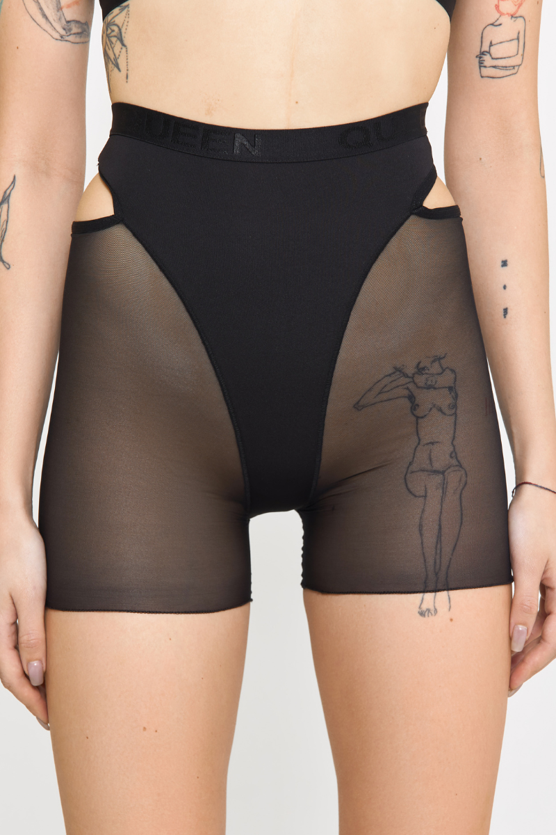 Queen Wear Candy High Waisted Shorts - Black Mesh